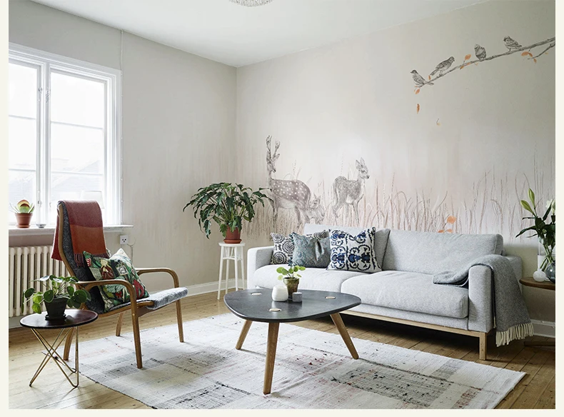 Настенные 3d фотообои Bacaz с изображением оленей и птиц, большие обои для детской комнаты, дивана