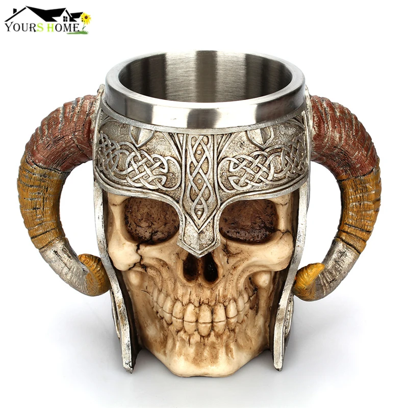 Кружка в виде черепа викинга 600 мл, кофейные кружки из нержавеющей...
