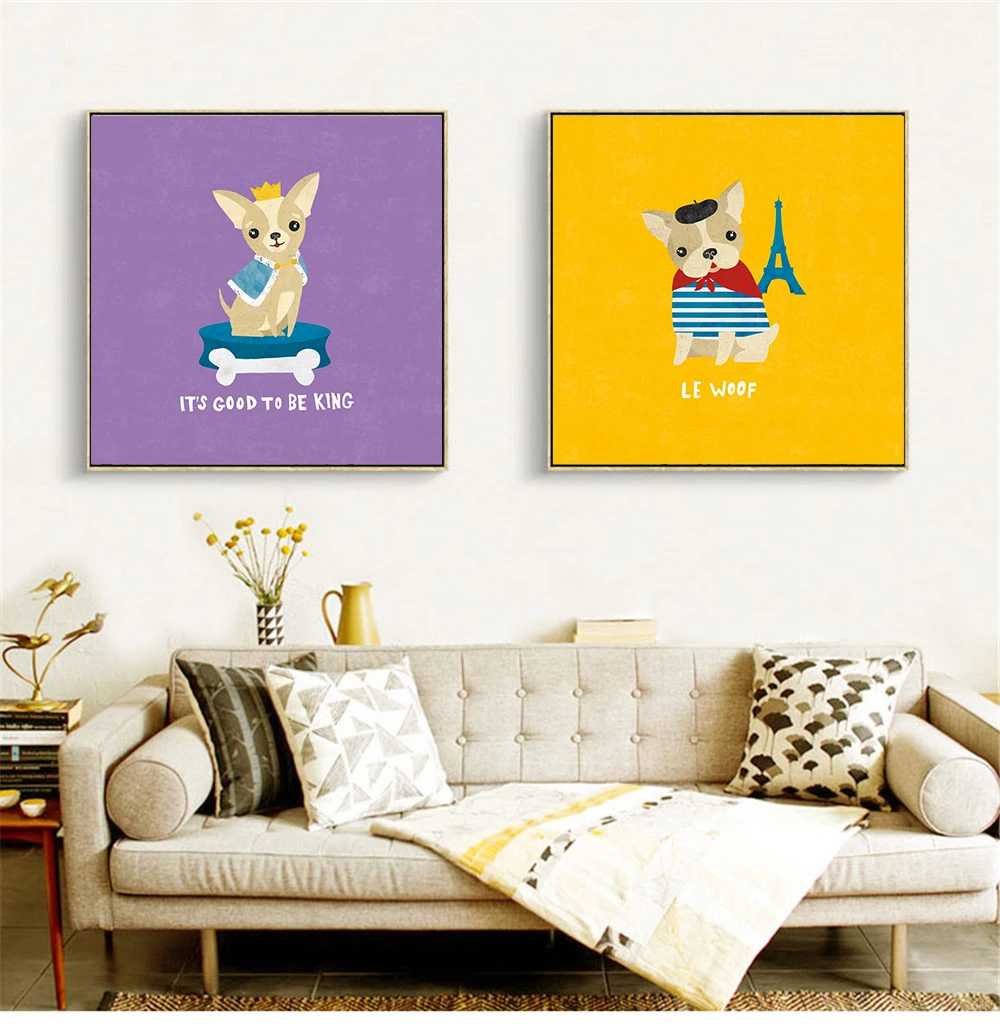 Милые постеры с мультяшной собакой, холст, печать, цитаты, хот-дог, Be Super Le Woof, украшение для детской комнаты, холст, картины для гостиной