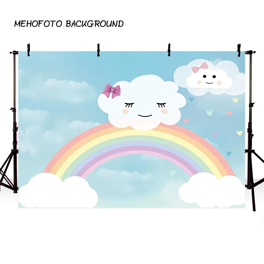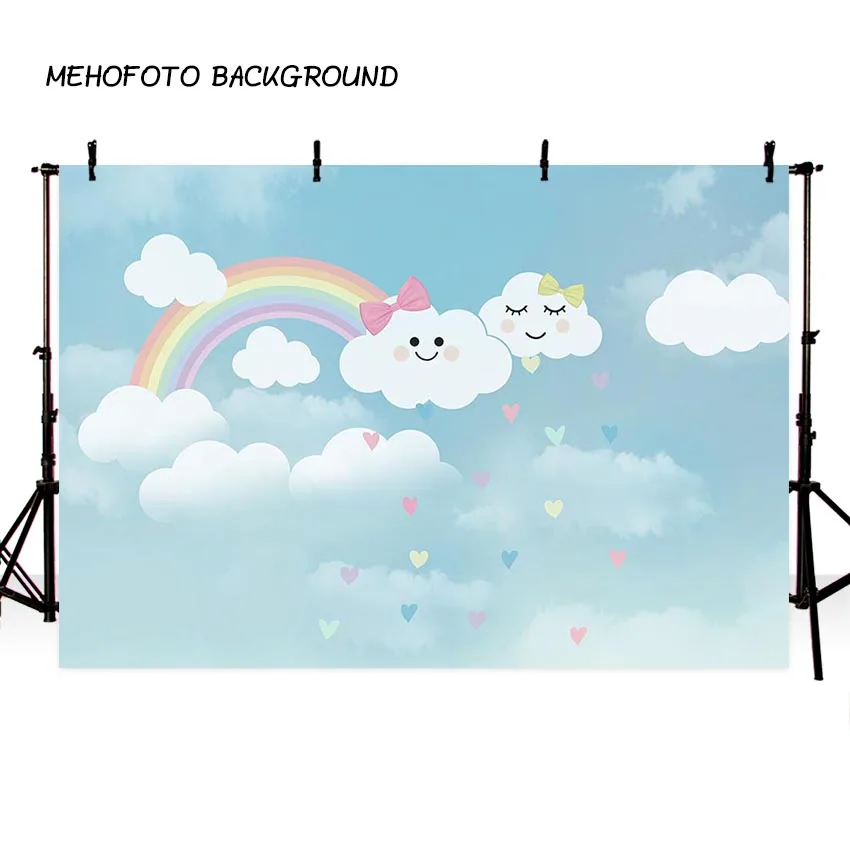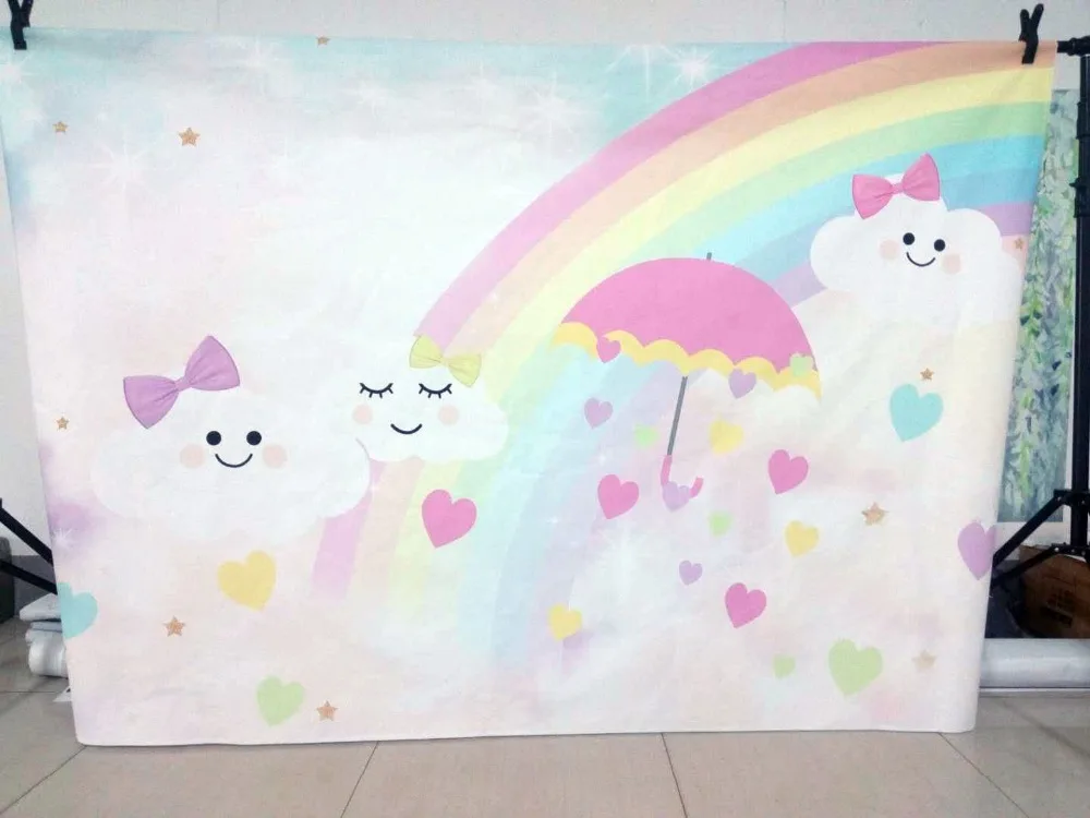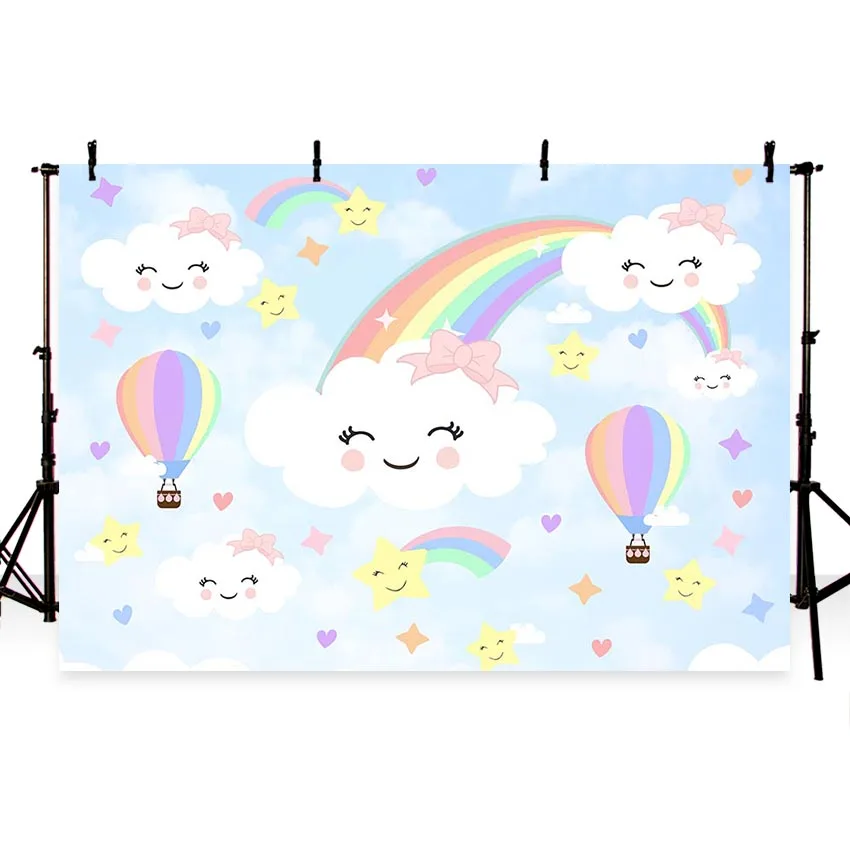 Фон с мультяшным голубым небом белым облаком зонтиком радугой для детского шоу на день рождения тематический фон профессиональная Фотостудия