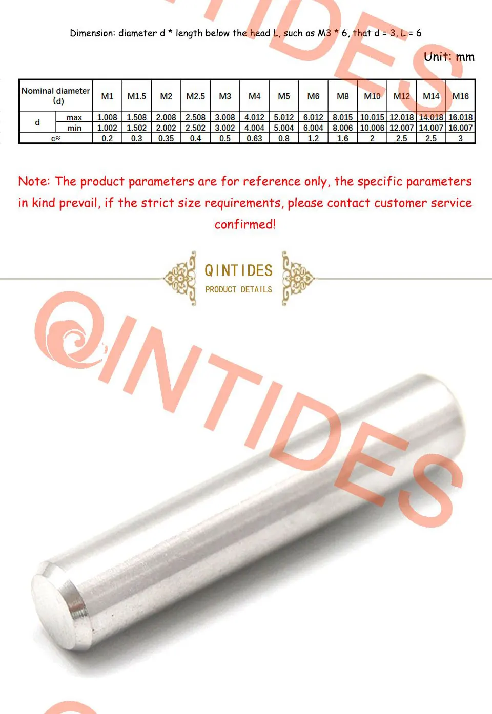 QINTIDES M12 M14 M16, параллельные штифты из нержавеющей стали, выс...