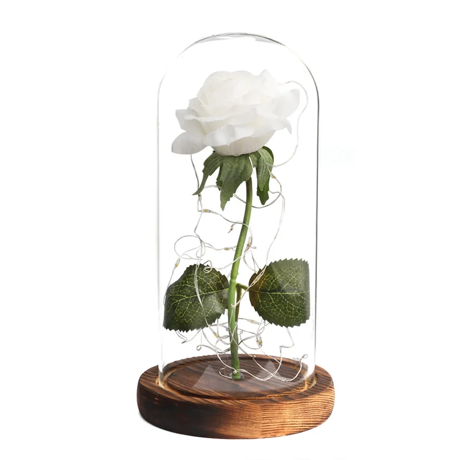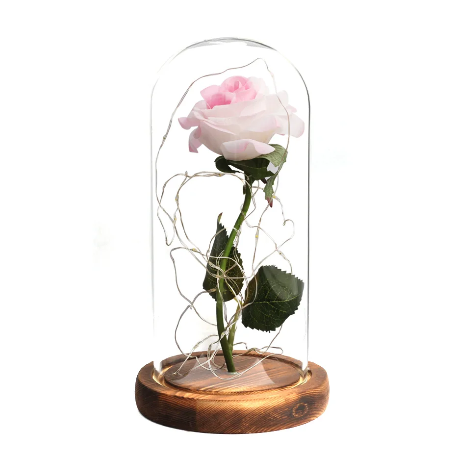 Искусственные цветы Красавица и Чудовище, розы в светодиодном стекл...