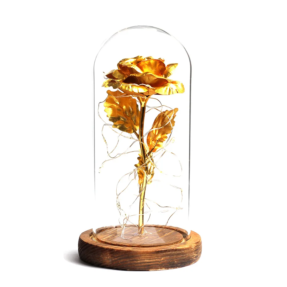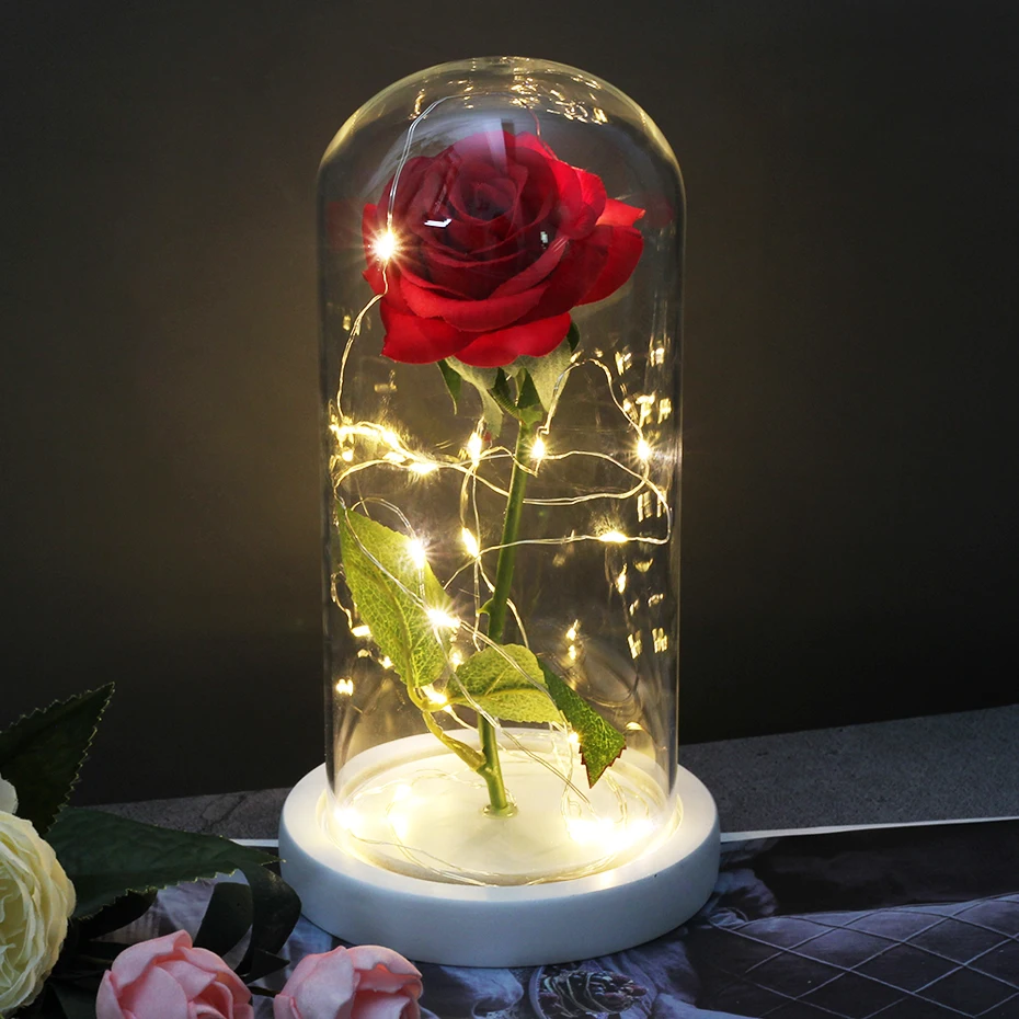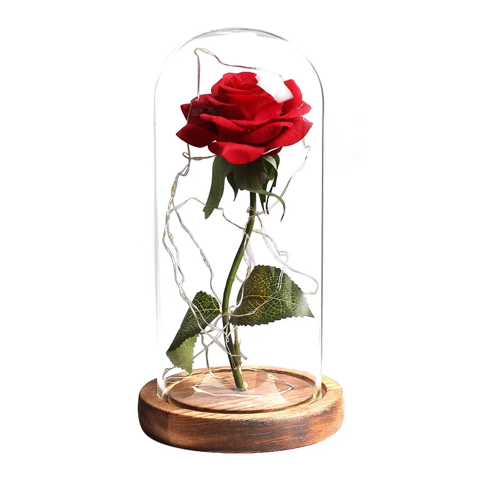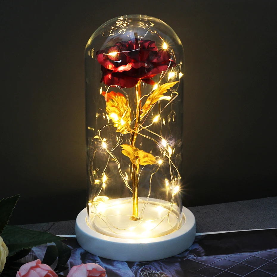 Светодиодный стеклянный купол в форме Золотой розы, декоративные венки с красной розой в виде красавицы и зверя на День святого Валентина, подарки на день матери
