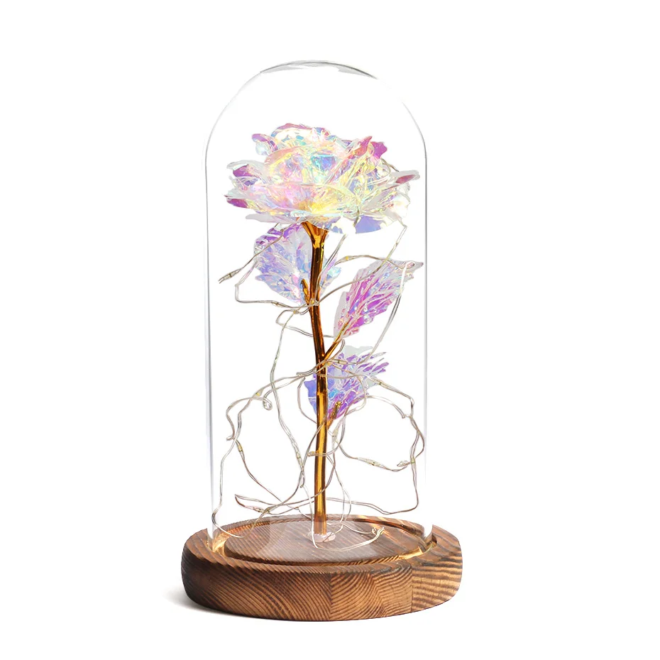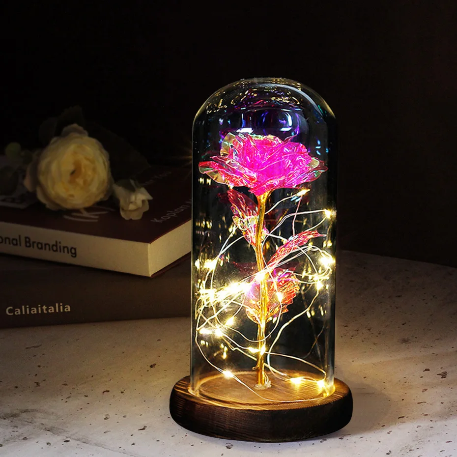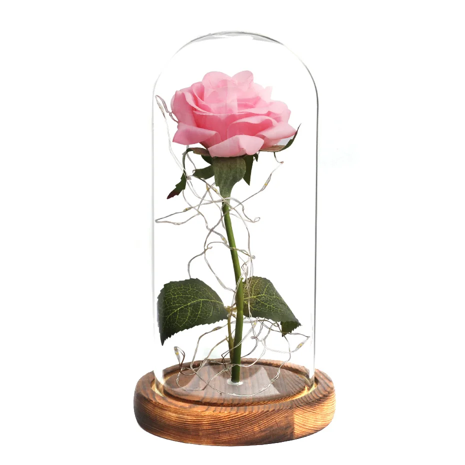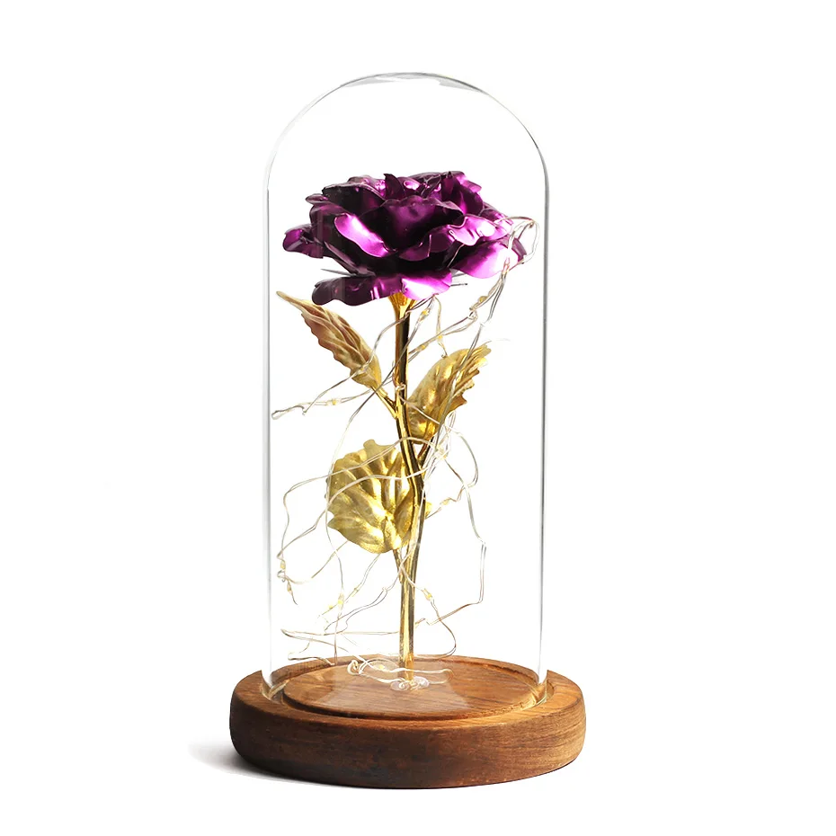 Светодиодный стеклянный купол в форме Золотой розы, декоративные венки с красной розой в виде красавицы и зверя на День святого Валентина, подарки на день матери