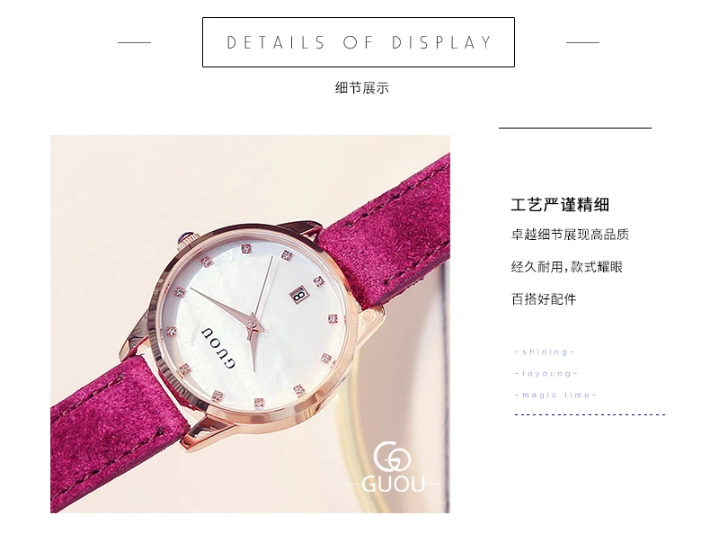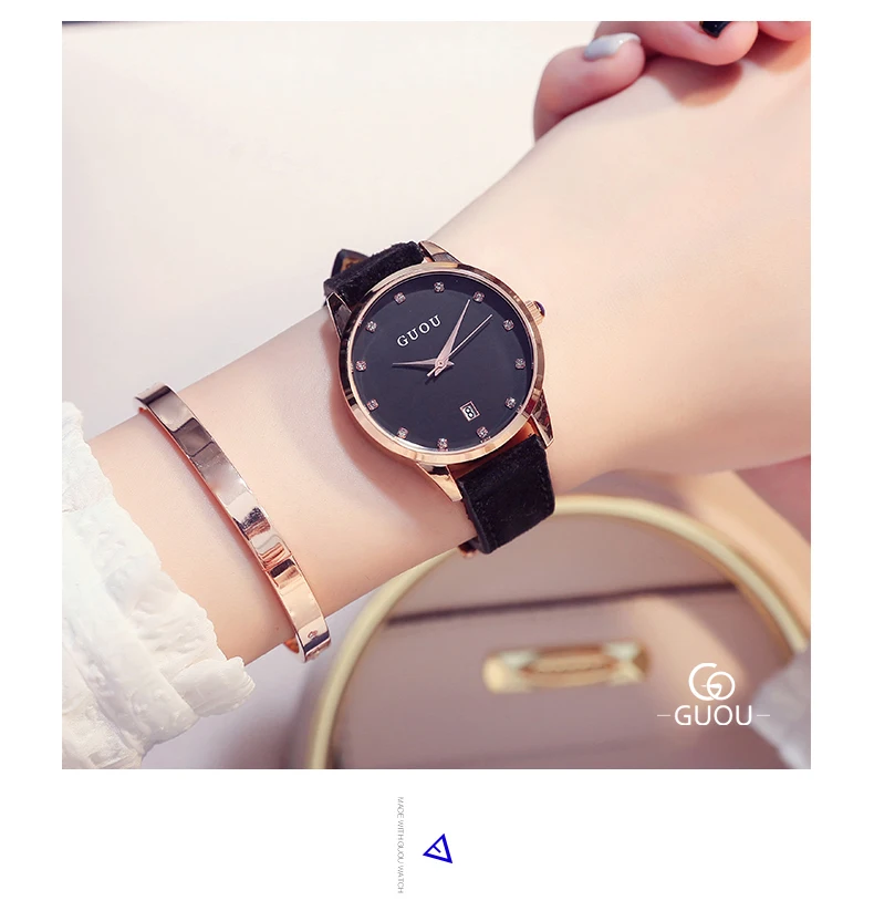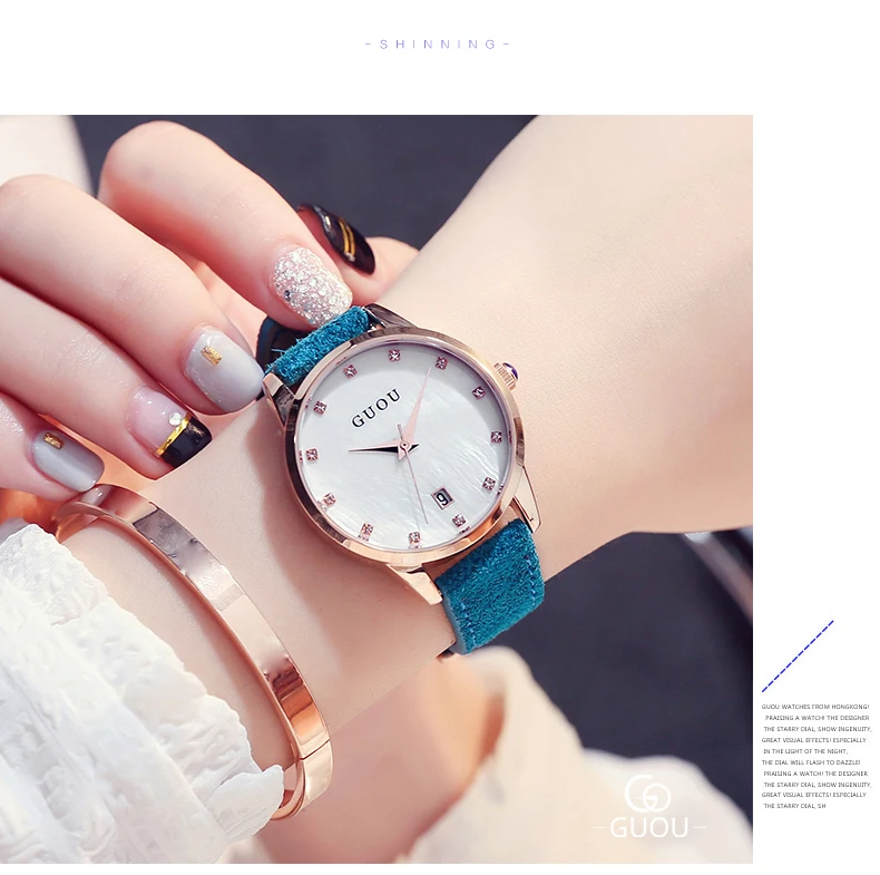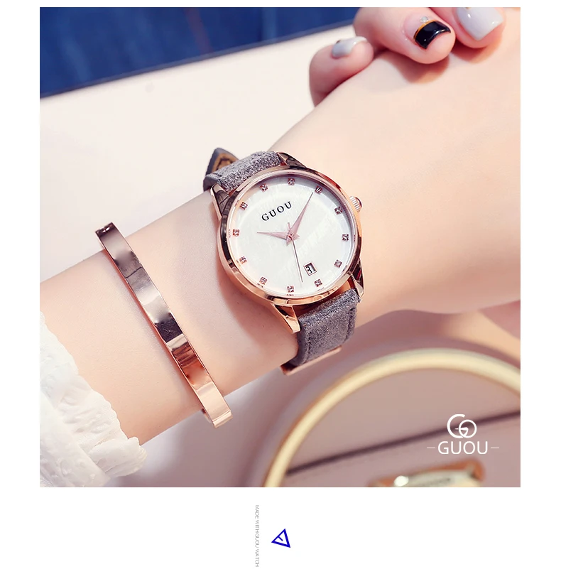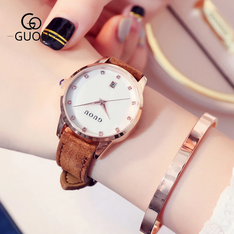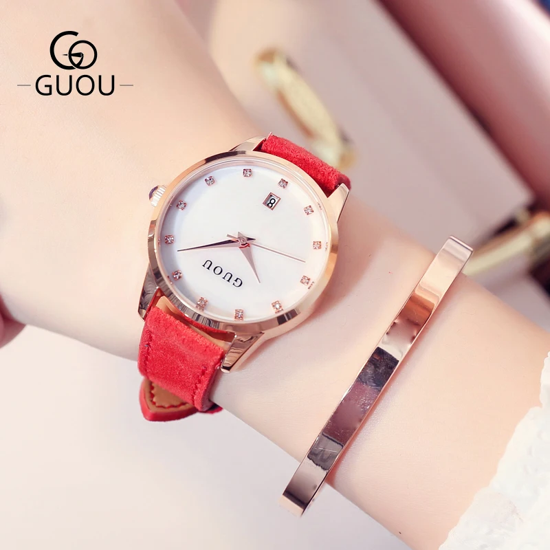 Часы GUOU женские противоударные, модные пушистые с кожаным ремешком