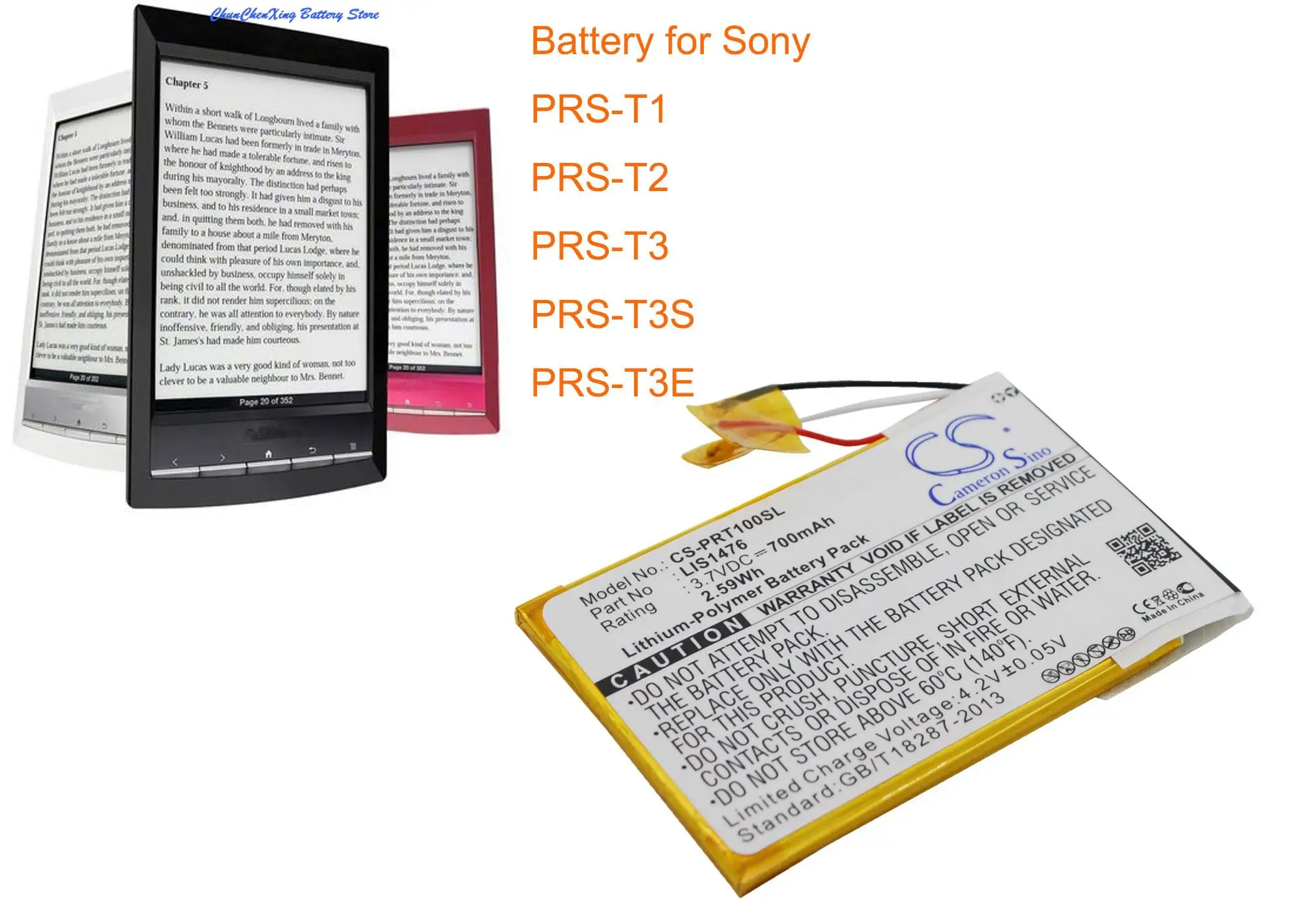 Cameron Sino 700 мАч аккумулятор 1-853-104-11, LIS1476, LIS1476MHPPC(SY6) для Sony PRS-T1, PRS-T2, PRS-T3, PRS-T3E, PRS-T3S