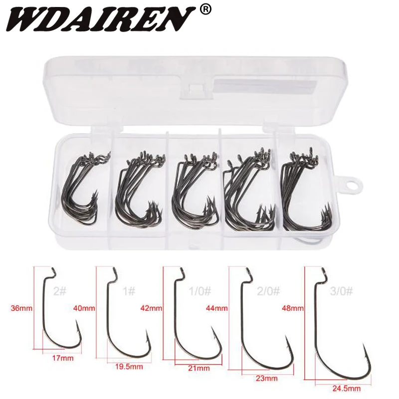 Рыболовные крючки, 50 шт.кор., с широким кривошипом, из углеродистой стали, офсетный рыболовный крючок 30 #-2 #, для ловли карпа с зазубринами, набор из Мягкая приманка в виде червей