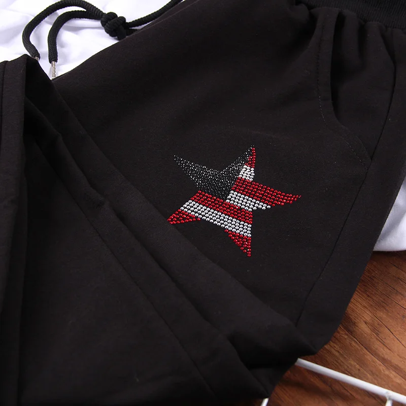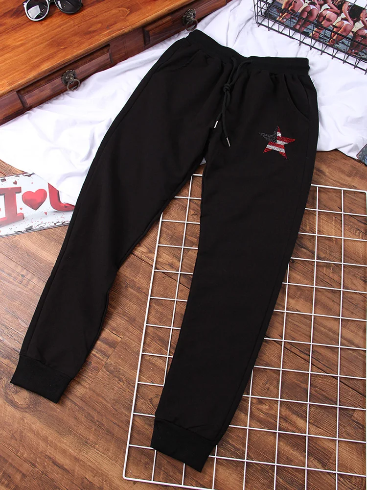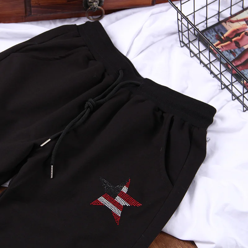 Женские шаровары, новинка 2021 года, весенне-осенние спортивные штаны, повседневная мода, свободная эластичная талия, звездный узор, Горячие бриллианты, женские брюки