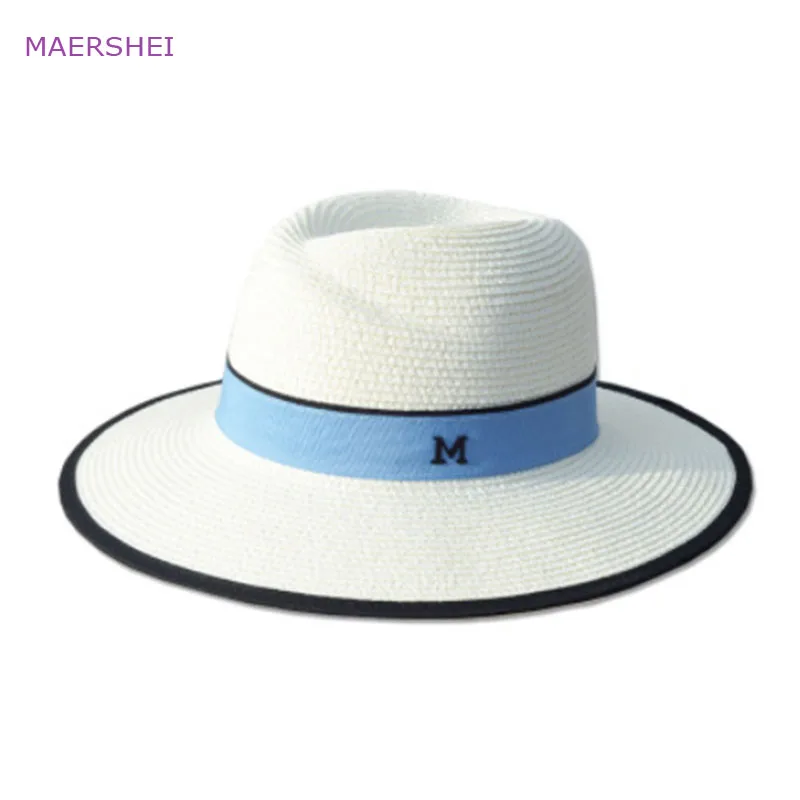 Шляпа MAERSHEI Соломенная женская, стандартная пляжная Панама от солнца в Корейском стиле, с защитой от ультрафиолета, в стиле джаз, белая, летняя