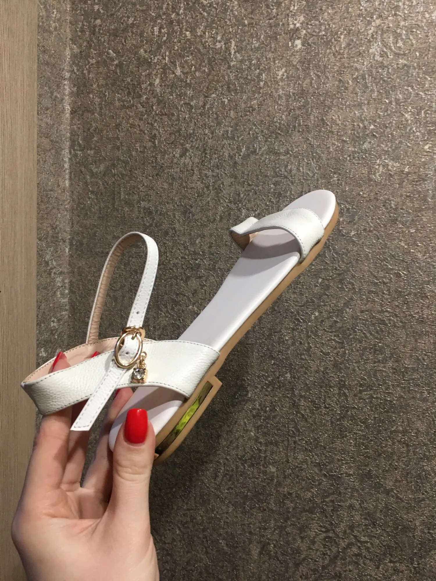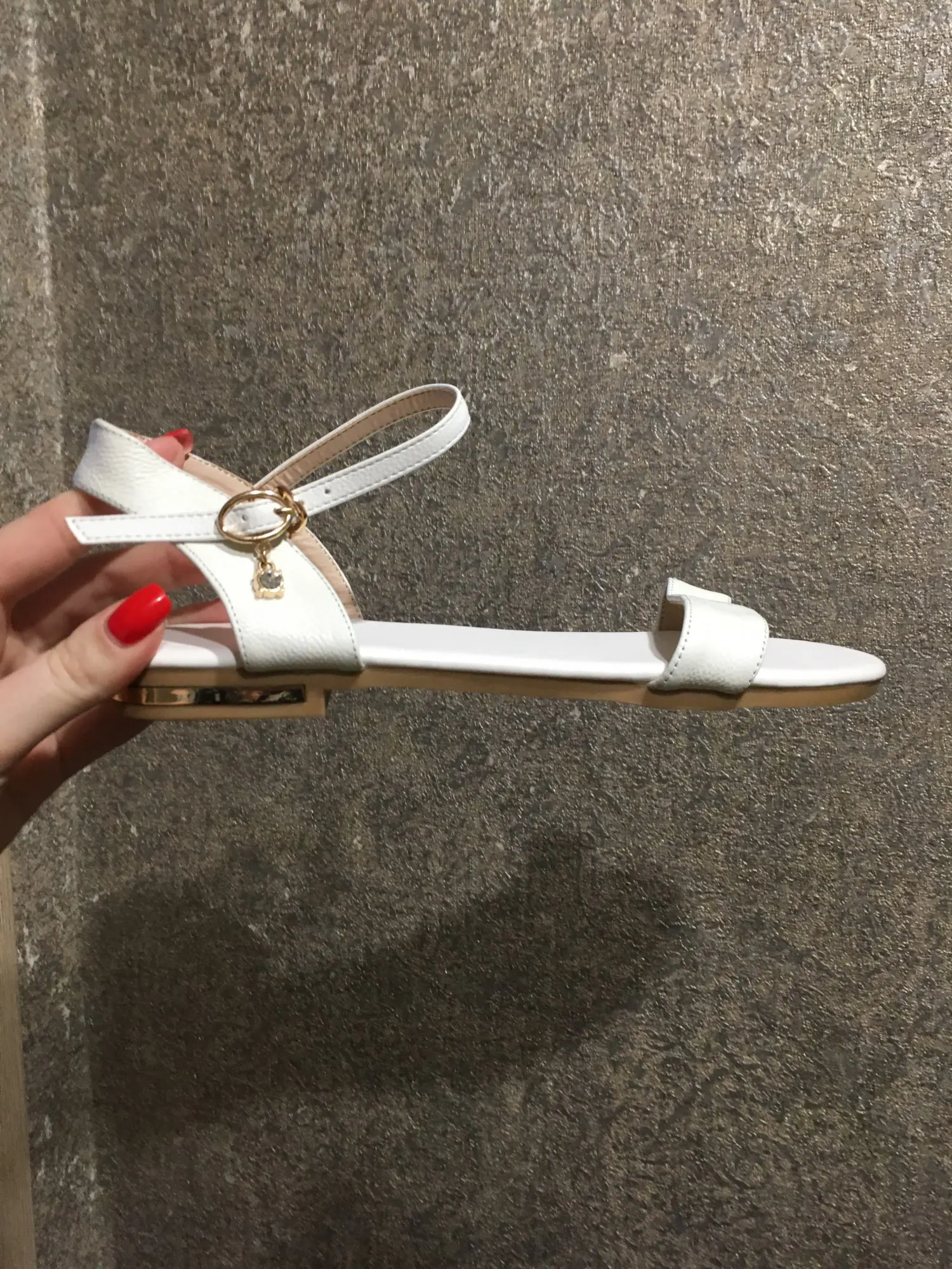 Классные сандали, не знаю, кожа или нет, похоже на искусственную кожу. Смотрятся просто и в то же время стильно. У меня размер 39, почитала отзывы, советовали брать на пару размеров больше. Заказала 10, это китайский 41, когда в первый раз надела, были впритык даже чуть жали, но походила по комнате полчаса, стали ощущаться нормально. Потом прошлась по улице, всё ок, чуть растянулись и сели по ноге. Доставка 15 дней до Сантьяго Чили, очень быстро. Продавец положил небольшой подарочек - браслетик с рыбкой. Спасибо ему. Продавца рекомендую!