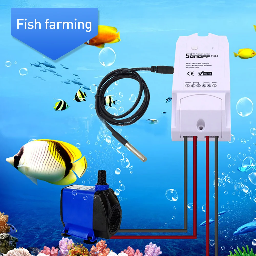 С приложением eWeLink пользователи могут создавать простое условное заявление (смарт-сцена) для включения/выключения других смарт-устройств. Это означает, что пользователи могут использовать Sonoff TH10 или Sonoff TH16 с Si7021, AM2301, DS18B20 для обнаружения температуры/влажности, а затем установить указанную температуру. Или гул. Диапазоны в качестве условий для включения/выключения других смарт-устройств в той же учетной записи, таких как Sonoff BASICR2, BASICR3, RFR2, RFR3, Sonoff SV. Это устройство прекрасно работает с электрическим вентилятором, кондиционером, увлажнителем, умным аквариумом, системой полива и т. д.