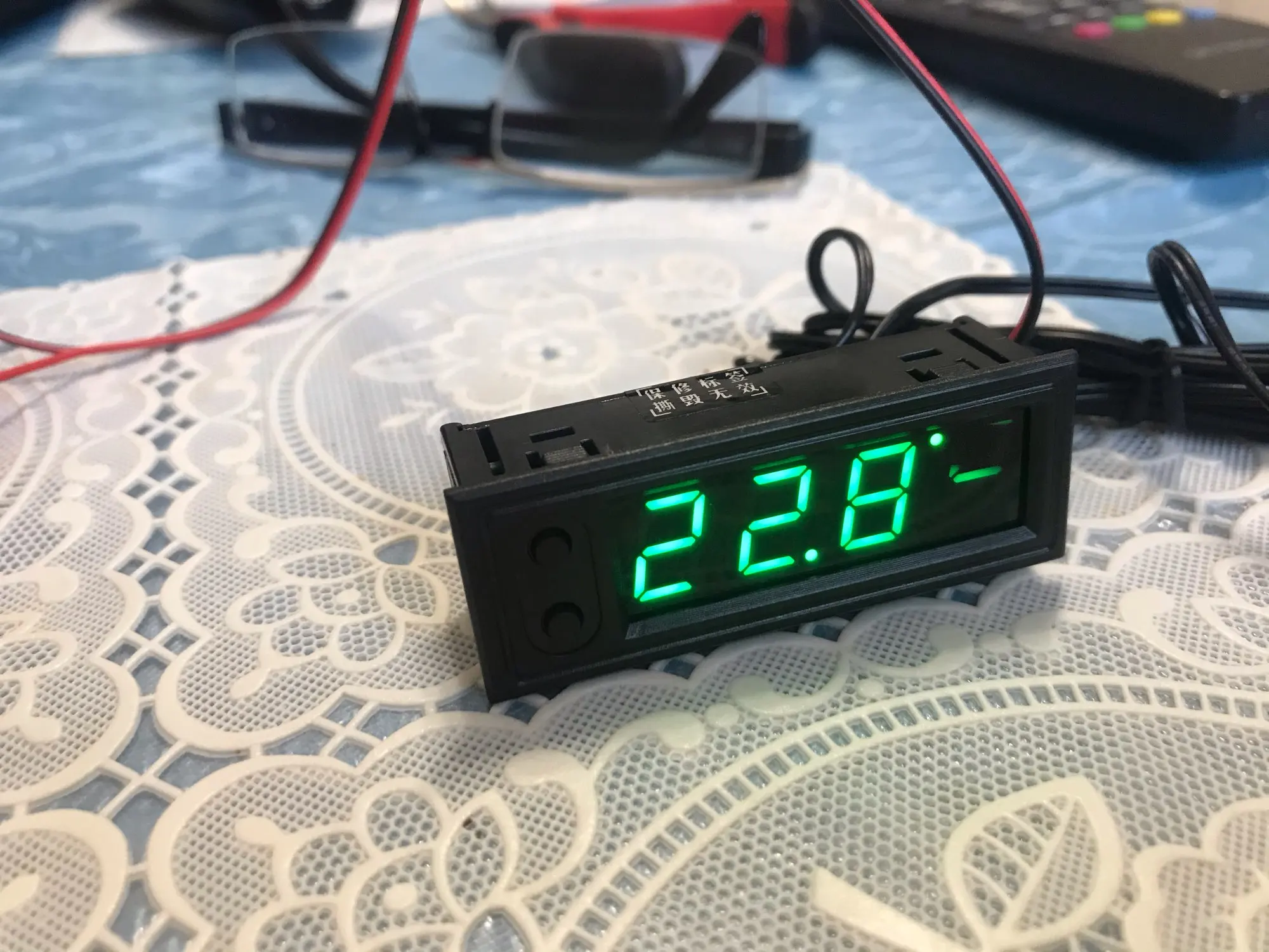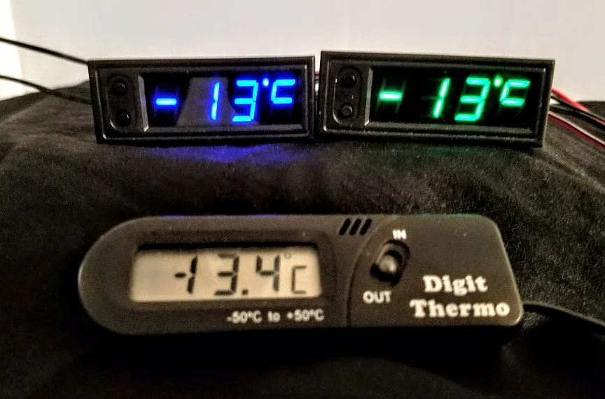 Полностью соответствует описанию. Уверенно работает от 5В. Цифры не мерцают и красный цвет очень приятный для глаз. Датчики показывают температуру с разбегом в 0.4 градуса, но это можно устранить.