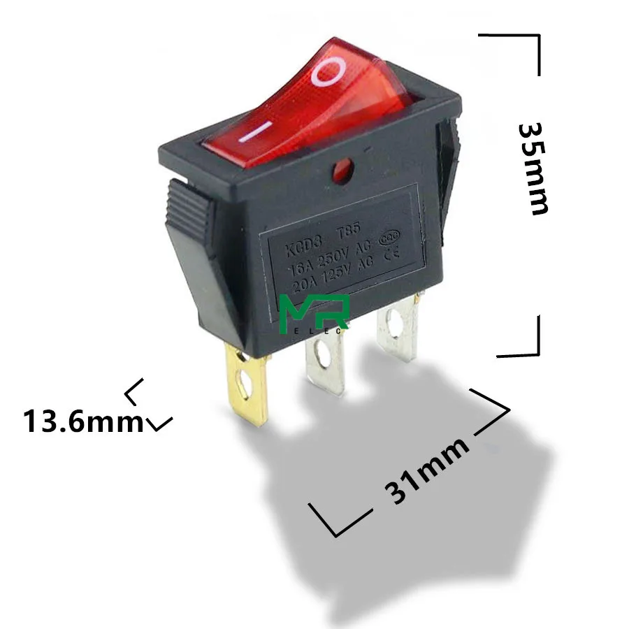 Кулисный Переключатель KCD3, 2 положения, 3 контакта, электрическое оборудование с светильник ключателем питания 16 А, 250 В переменного тока20 А, 125 В переменного тока, 35 мм * 31 мм * 14 мм
