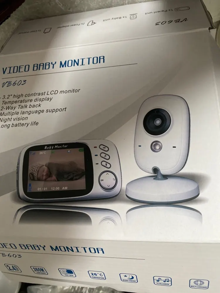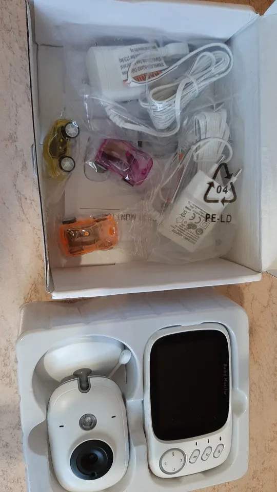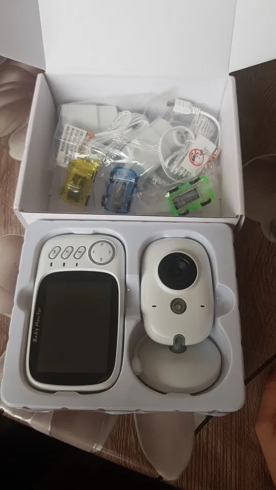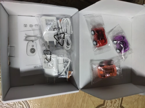 доставка 1 месяц, все упаковано в коробку, но все равно чуть помялось, хотя был мягкий слой. имеется камера и видео монитор, а также две подзарядки. в подарок продавец положил три машинки, хотя у меня будут девочки. камера работает, хорошая цена.