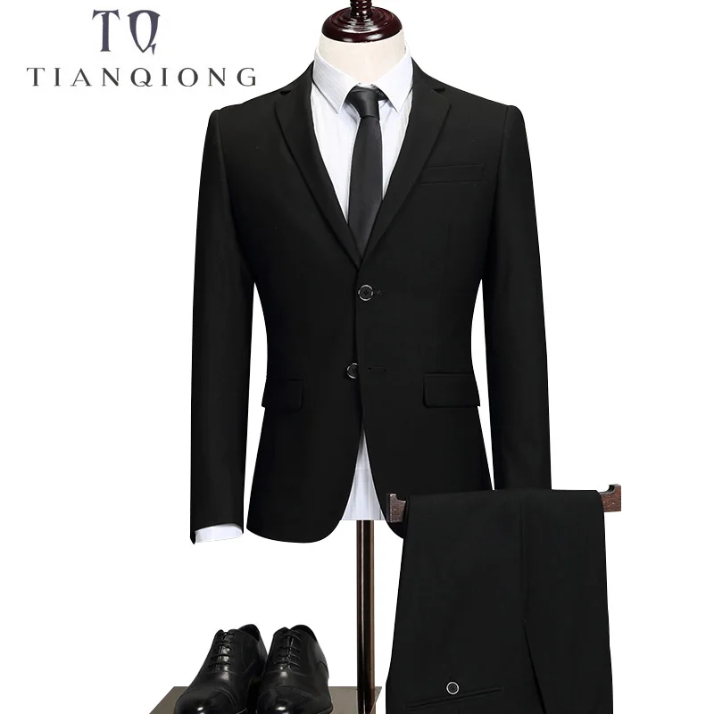 Брендовые свадебные костюмы для мужчин TIAN QIONG, мужской черный костюм для жениха, приталенный деловой смокинг, жакет и брюки на заказ