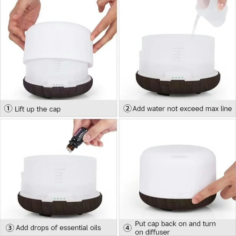 Ультразвуковой увлажнитель воздуха, диффузор эфирного масла 500 мл с пультом дистанционного управления, светодиодный диффузор для ароматерапии, распылитель тумана