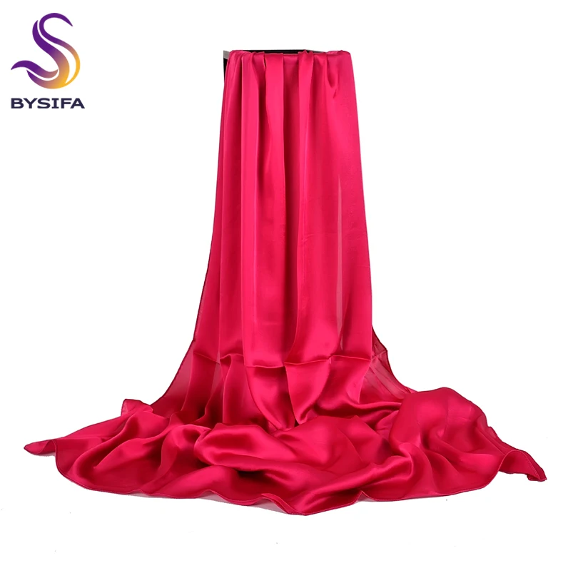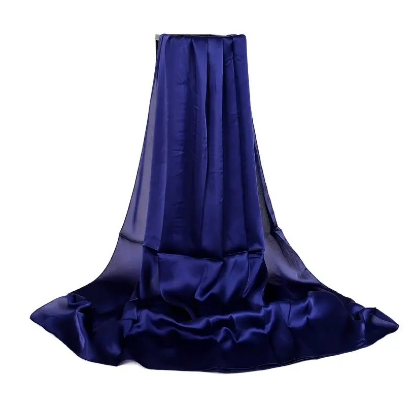 Женский шарф BYSIFA, голубой длинный сатиновый шарф на весну и осень, простой шарф 180*90 см