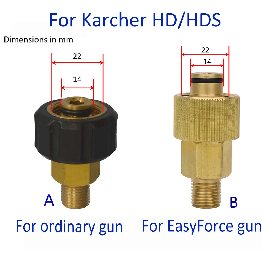 Таккаксуществуетдватипаадаптерадляэтоймаркимойкидавления. Пожалуйста, проверьтеразмерадаптераиубедитесь, чтоонподходитдлявашеймашины. Мыненесемответственностизанесовместимостьадаптера. Есливынеуверены, пожалуйста, свяжитесьснамииотправьтенамфотовашегопистолетаикопья, мыпоможемвыбратьподходящийадаптер.