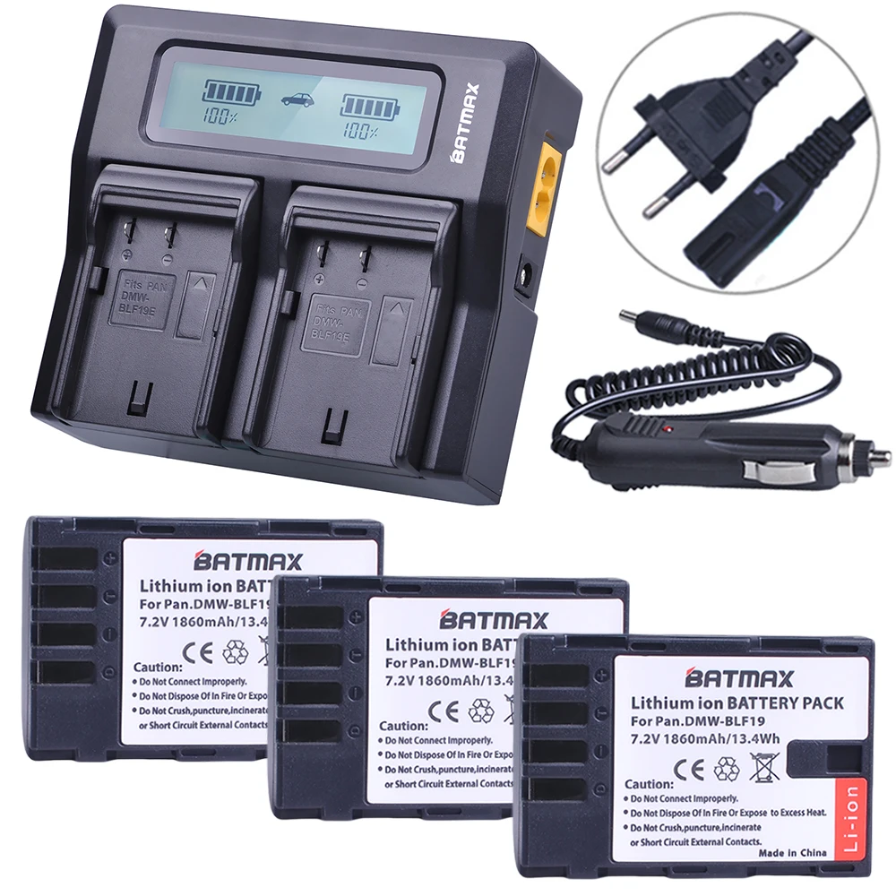 Аккумулятор BLF19, BLF19E, 3 шт., 1860 мА ч, DMW-BLF19, DMW-BLF19E, DMW-BLF19PP, быстрая зарядка с двумя ЖК-дисплеями для Panasonic Lumix GH3, GH4, GH5, G9