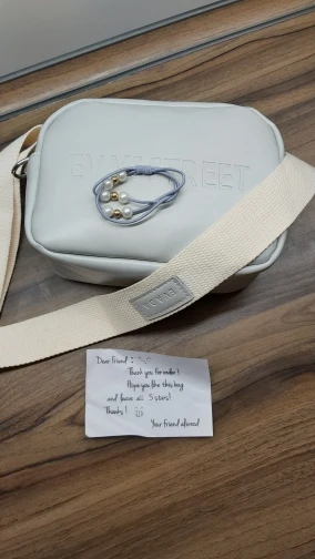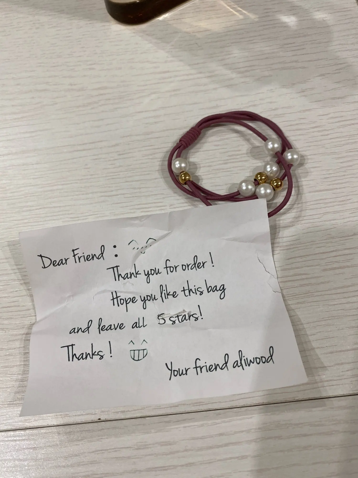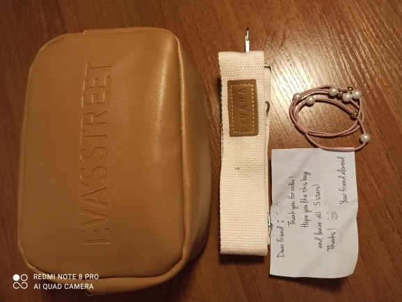 Сумка очень хорошая, особенно за 600 рублей. Пришла достаточно быстро, упакована хорошо, в подарок положили резинку и такую милую записочку)