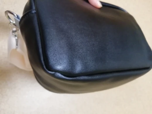 Очень быстрая доставка , ткань мягкая , сумочка миниатюрная , но вместительная . Расстроили серые держатели для ремня на чёрной сумке (