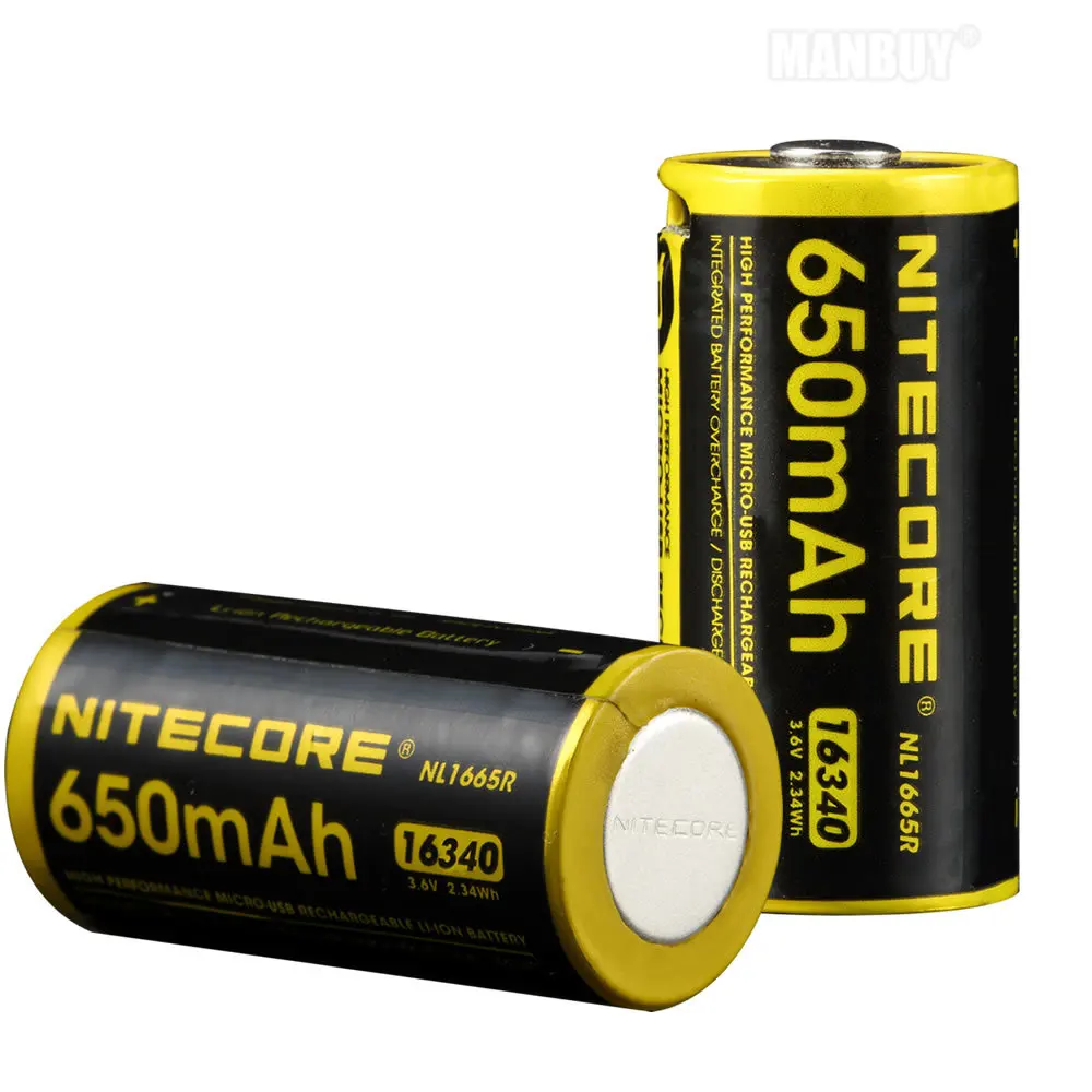 NITECORE NL1665R 650 mAh 16340 CR123 Высокая производительность Micro-USB Перезаряжаемые литий-ионный Батарея(Не включает usb-кабель для зарядки)