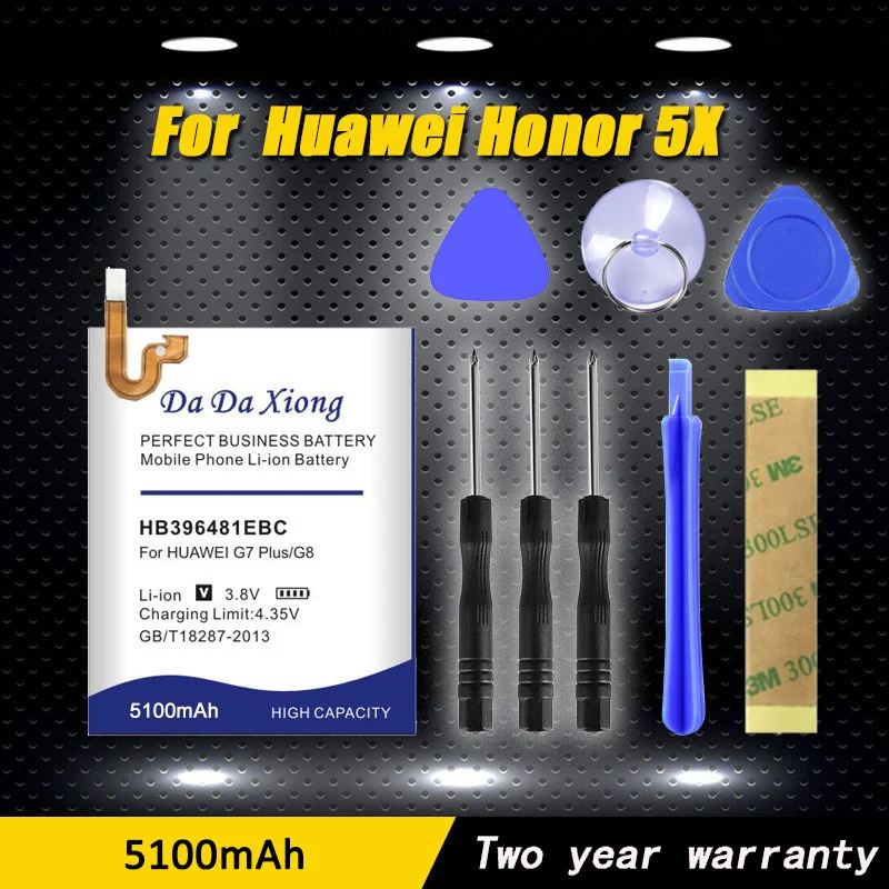 Батарея для сотового телефона Huawei Honor 5X, аккумулятор G7 Plus G8 G8X, 5100 мАч, модель HB396481EBC