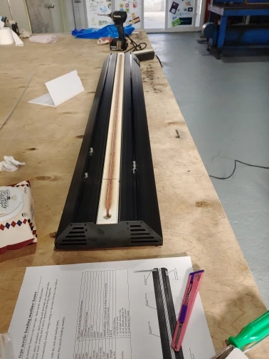 Положите акриловую панель с одной стороны в направляющее правило и выровняйте положение нагрева при нагревании канавки.