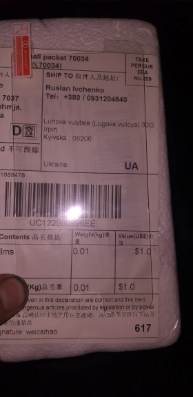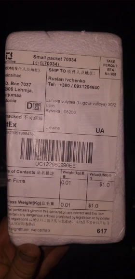 Страна: UA Доставка: Cainiao Super Economy 30.03.2021