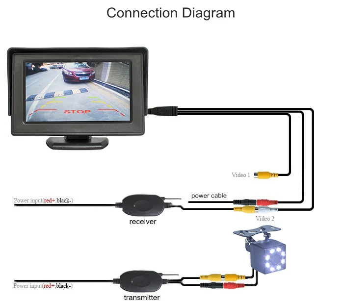 Избавляет от необходимости запускать кабель длиной автомобиля, просто подключите передатчик на конце камеры и приемник на конце монитора.