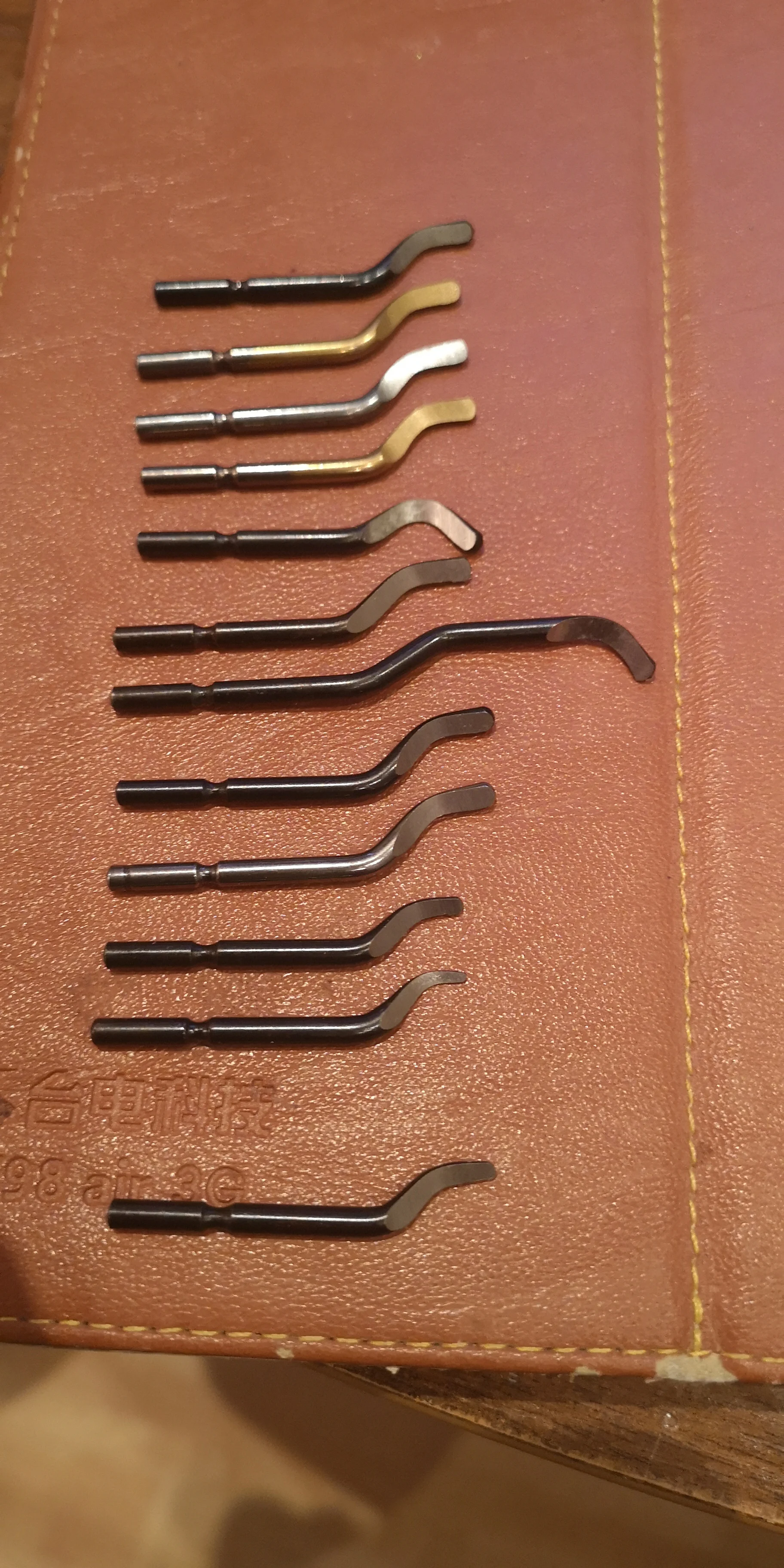 Набор сделан довольно качественно. лезвия не пластилин. Но есть несколько проблем. Если вы левша, то конструкция лезвий позволяет работать только с 3 из 11 лезвий. Остальные просто не принимают нужного положения. Также почему-то ручка не влезает в коробку с лезвиями. Довольно странно, ведь место там явно под неё(на фото). Стоит отметить, что лезвия не подписаны и ориентироваться можно только на их цвет и угол заточки.