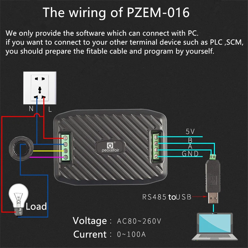 Этот модуль в основном используется дляИзмерение напряжения переменного тока, тока, активной мощности, частоты, коэффициента мощности и активной энергии,Модуль Без функции отображения, данные считываются через интерфейс RS485. Мы предоставляем программное обеспечение для подключения его к ПК, все системы Win могут быть использованы. Если вы хотите подключить его к другим терминальным устройствам, таким как PLC,SCM и так далее, пожалуйста, подготовьте Подходящий кабель и напишите программу самостоятельно.