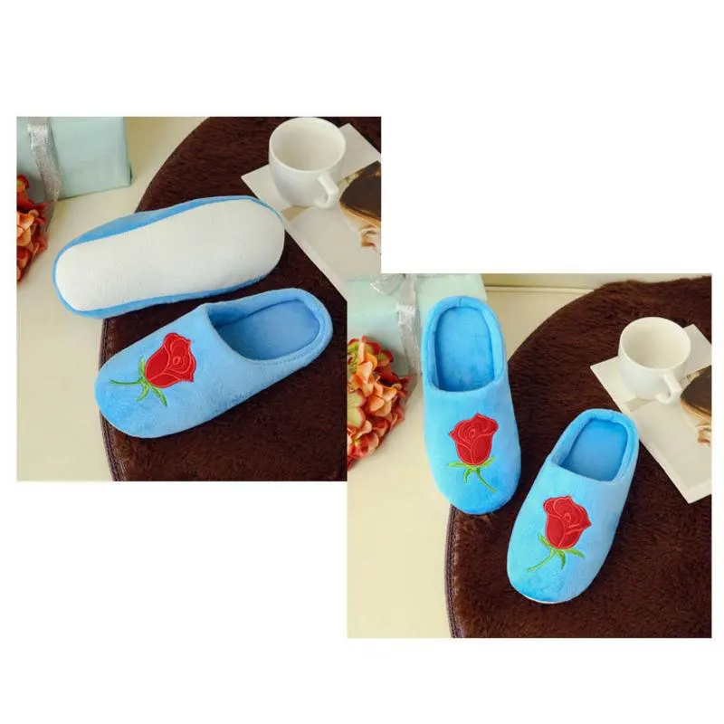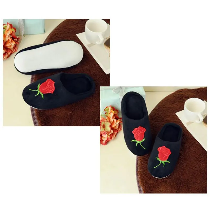 Женские домашние тапочки; Короткие плюшевые туфли на плоской подошве весна осень с вышивкой розы; Женские домашние шлепанцы на мягкой подошве; Женские теплые тапочки