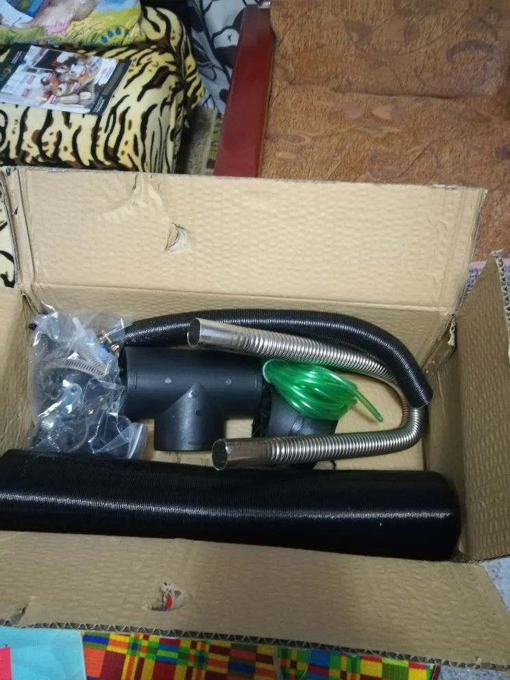 Пришло за две недели. Всё целое. Проверил, работает отлично! Выхлоп буду мастерить через радиаторы отопления, жалко тепло на улицу выкидывать.
