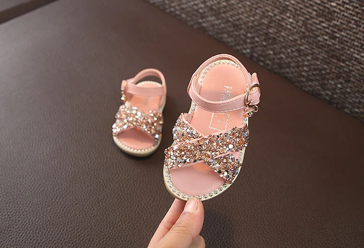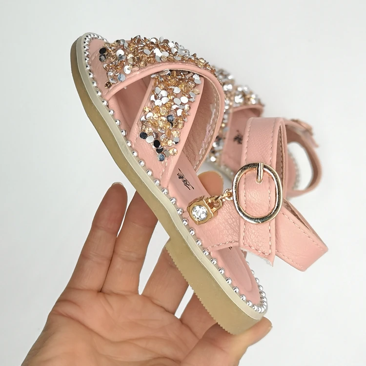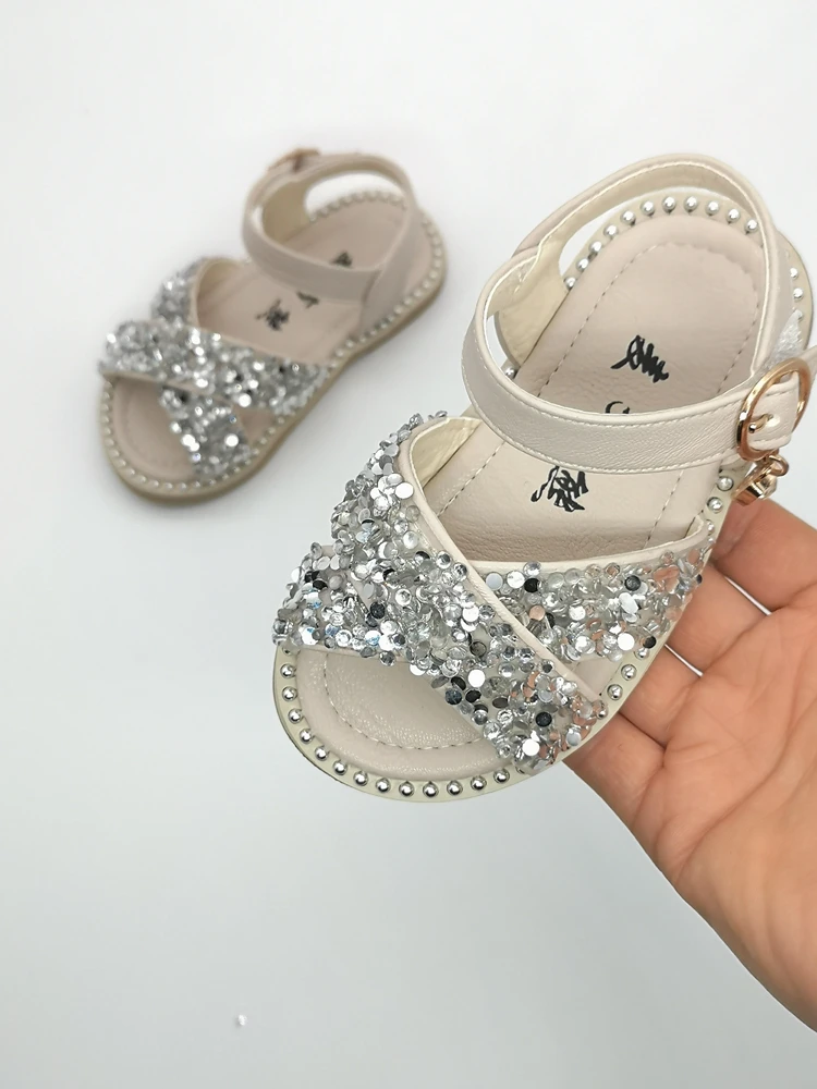 Босоножки Детские с блестками, бежевые стразы, для вечерние, на лето, 11,5-15,5 см