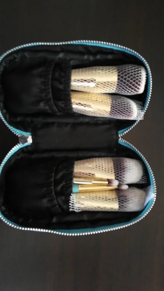 Отличный набор в поездку. Пришло вовремя, хорошо упаковано. Кисточки ничем не пахнут. Симпатичный чехольчик, даже что-то из косметики влезет. Продавца рекомендую.