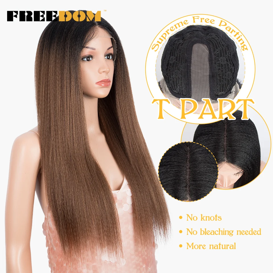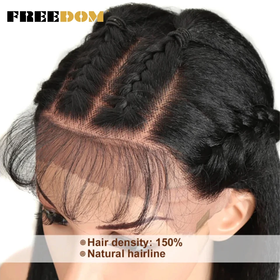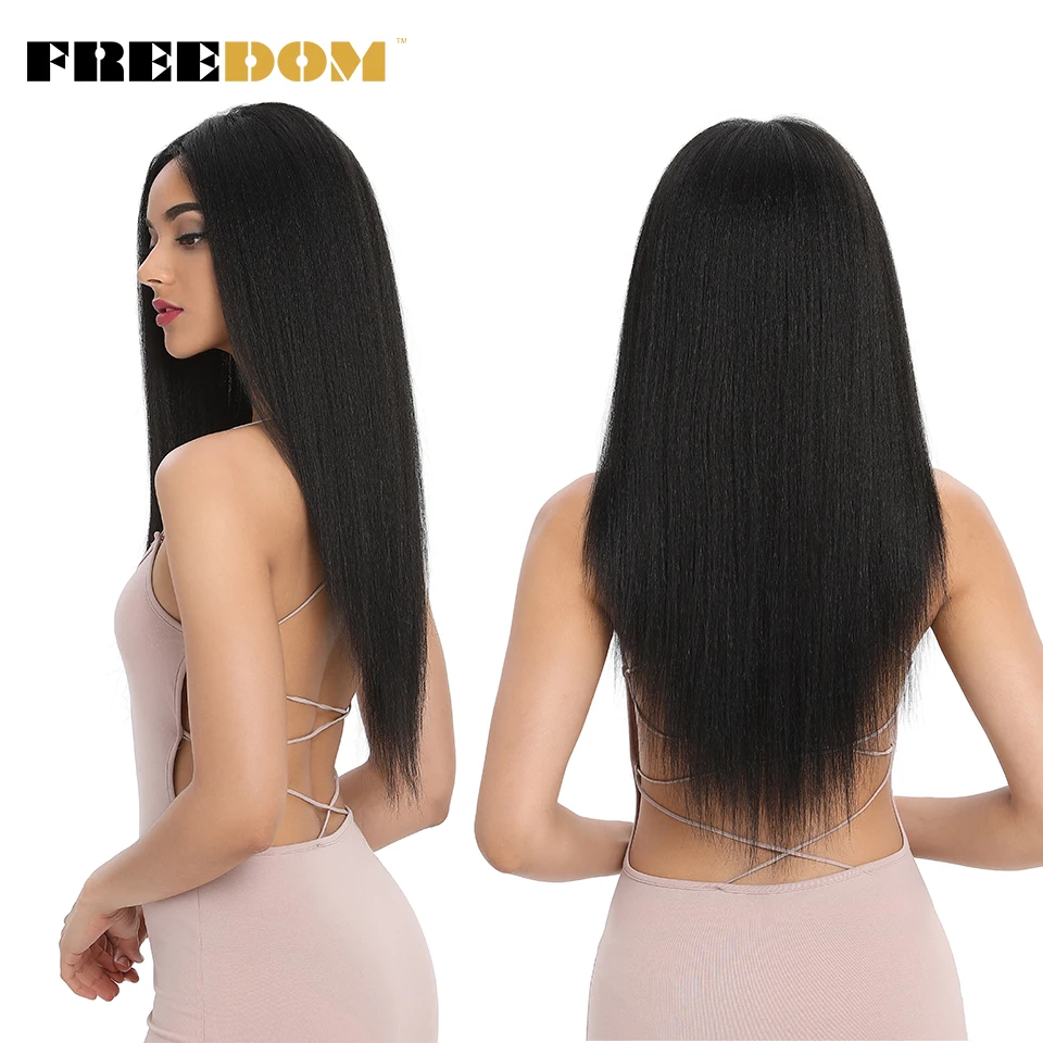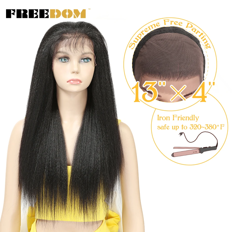 Синтетический парик фронта шнурка свобода для чернокожих женщин Яки прямой длинный 26 дюймов парик шнурка парик детских волос Термостойкое волокно
