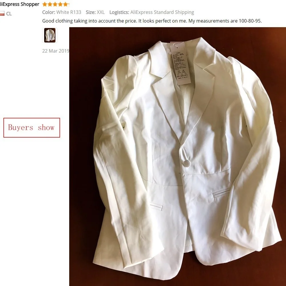 быстрая доставка-чуть меньше месяца. заказываю 2 раз. 1 раз не угодала с размером и заказала "S" на рост 166 и вес 52кг. оказался мал. но мне очень понравился пиджак и повторно заказала'"L" и сейчас прямо как на меня сшит. качеству респерт!!! цвет как на фото.