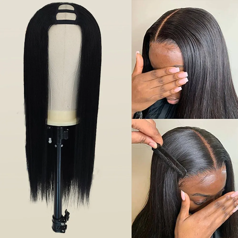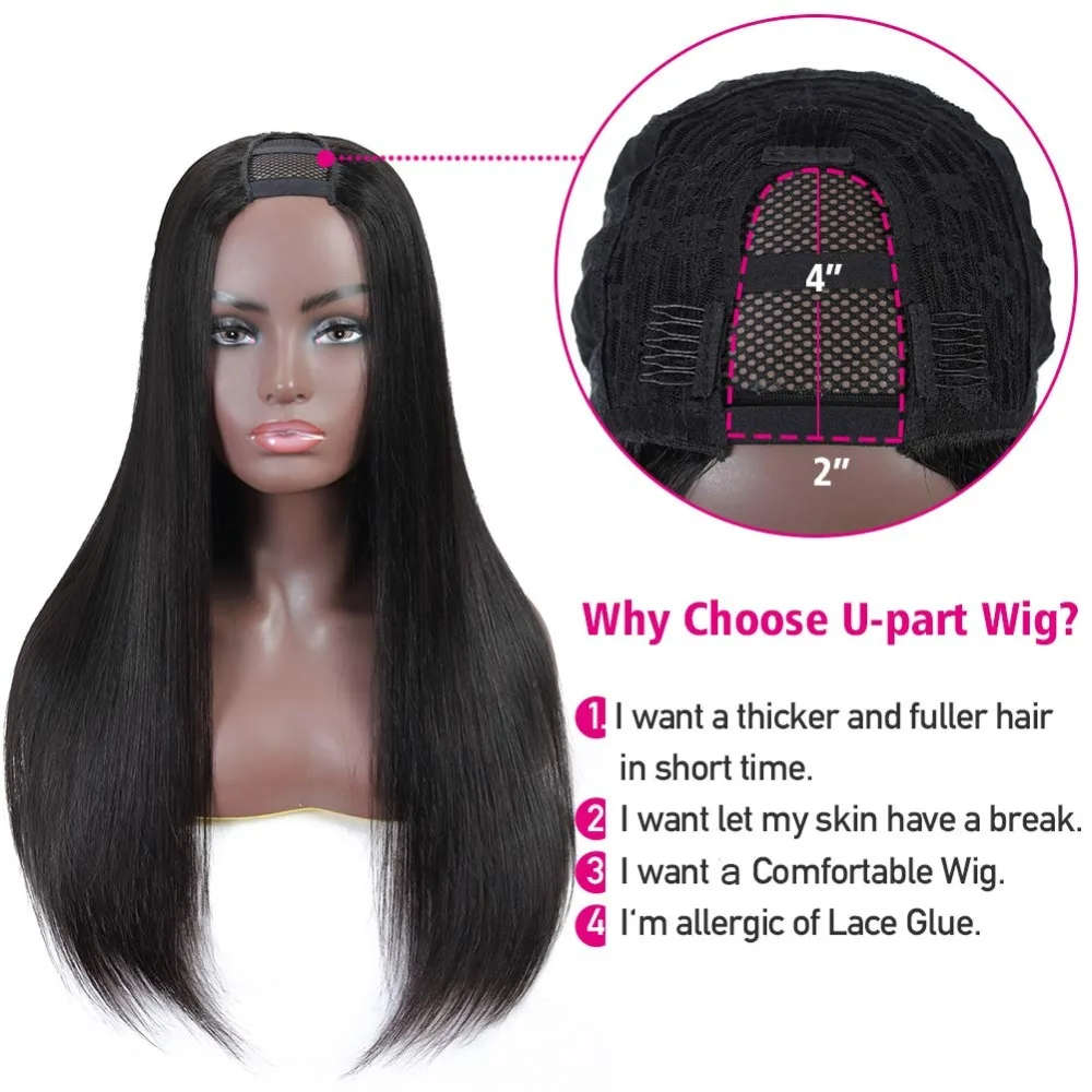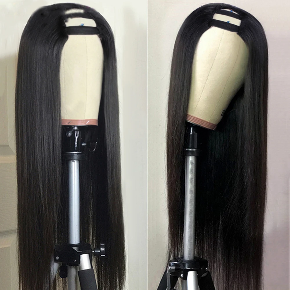 U-образные парики, бразильские прямые парики из человеческих волос с косточками для чернокожих женщин, средние U-образные глубокие парики, плотность 150, бесклеевые парики на сетке