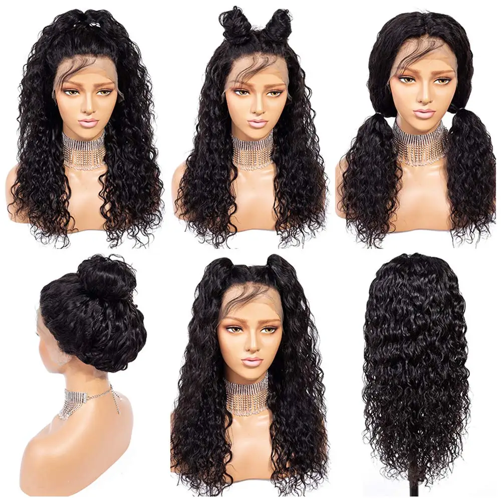 Водная волна Синтетические волосы на кружеве парик 13x4 человеческие волосы Синтетические волосы на кружеве al парики для Для женщин 4x4 закрытие парик, несекущиеся бразильские вьющиеся волосы Remy Ms любовь