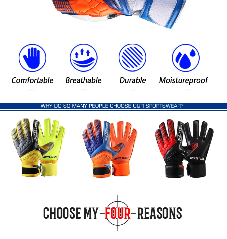 Футбольные Перчатки Shinestone, профессиональные из толстого латекса, для детей и взрослых, с защитой пальцев