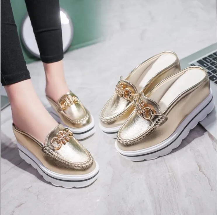 EFFGT женские мюли обувь сандалии стразы цепи металлическая пряжка дизайн Тапочки Baotou Платформа туфли на танкетке