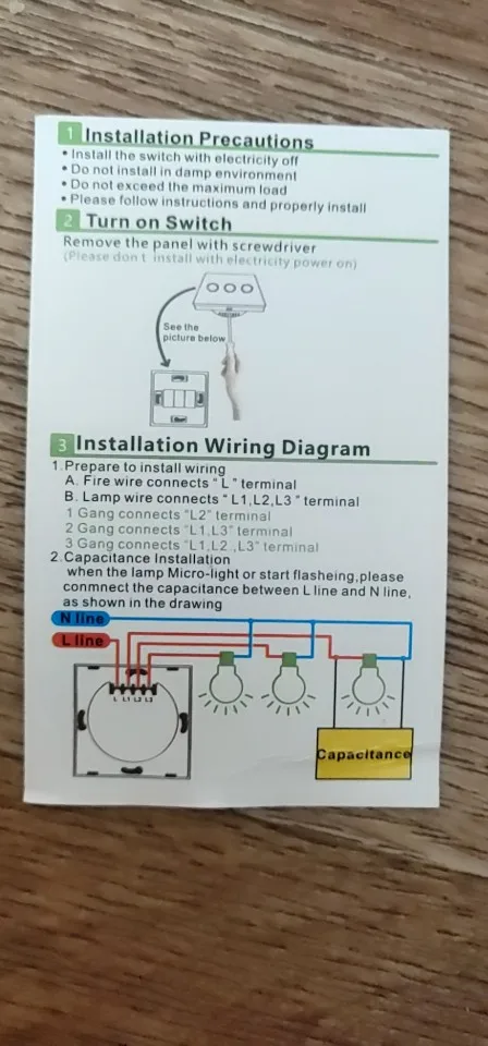 Первый выключатель пришёл со сколом. Продавец был вежлив и общителен предложив выслать новое стекло. Решил заодно заказать ещё один выключатель. Стекло пришло вместе с ещё одним выключателем в одной посылке. Подключив оба выключателя в сеть (коридор и кухня на одной фазе) с конденсатором как указано на схеме получил периодические мерцания. Так же ещё выключатели не всегда срабатывают и подвисают. Не знаю с чем уж это связано, но говорю как есть. А так выключателя ми доволен. Смотрятся стильно и красиво. В принципе за эти деньги рекомендую. Продавцу Спасибо за честность. Ставлю 5 звезд.