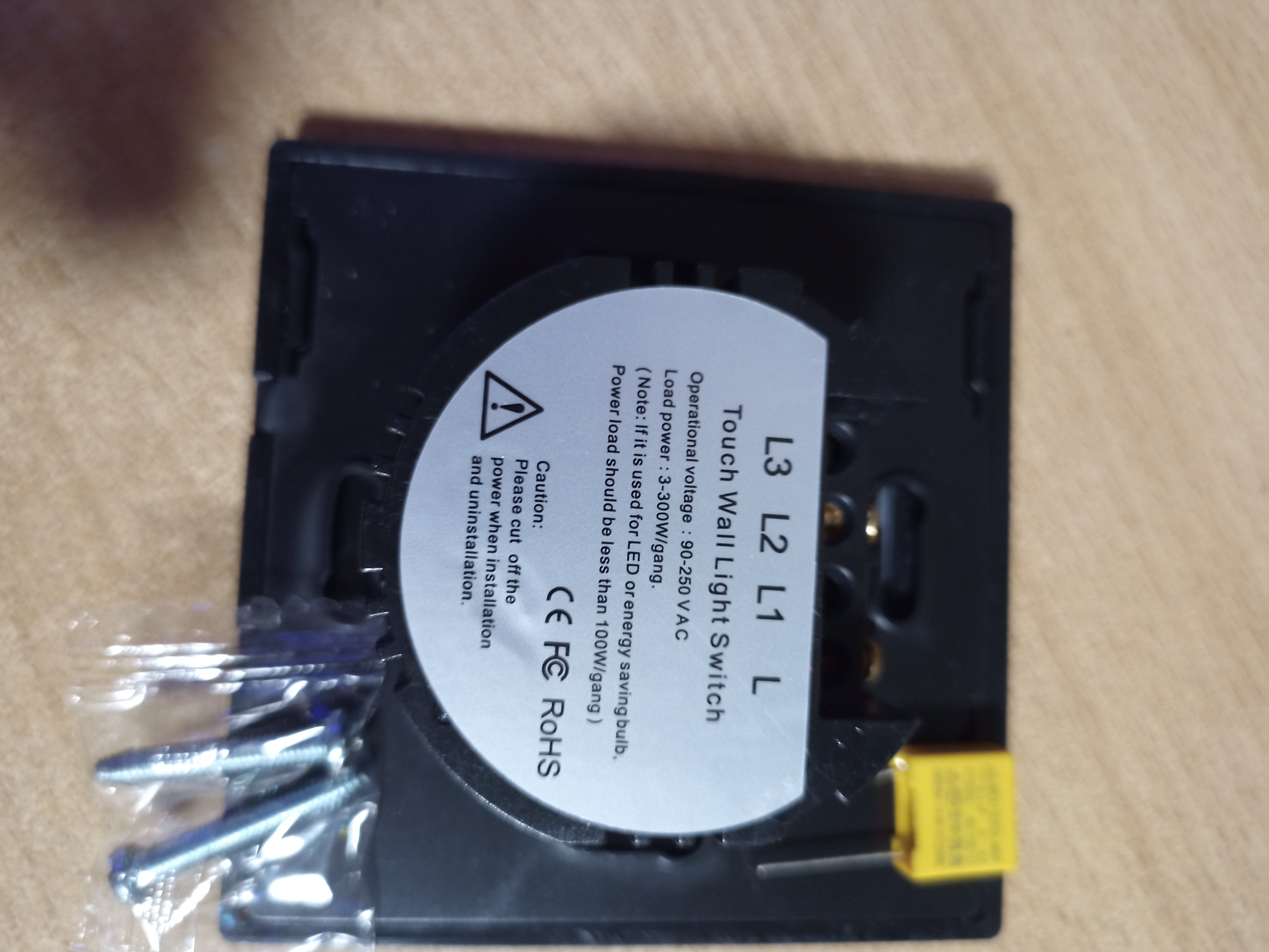 Отличный выключатель, достался за 300₽. Легко и просто монтируется в стандартные круглые подрозетники. Дополнительно в комплекте идёт конденсатор, пара фиксирующих винтов, инструкция. Во включенном состоянии горит красный индикатор, в выключенном - голубой. Реагирует на прикосновения чётко. Посылка пришла за 3 недели. Сало уронили! Хероям сала!