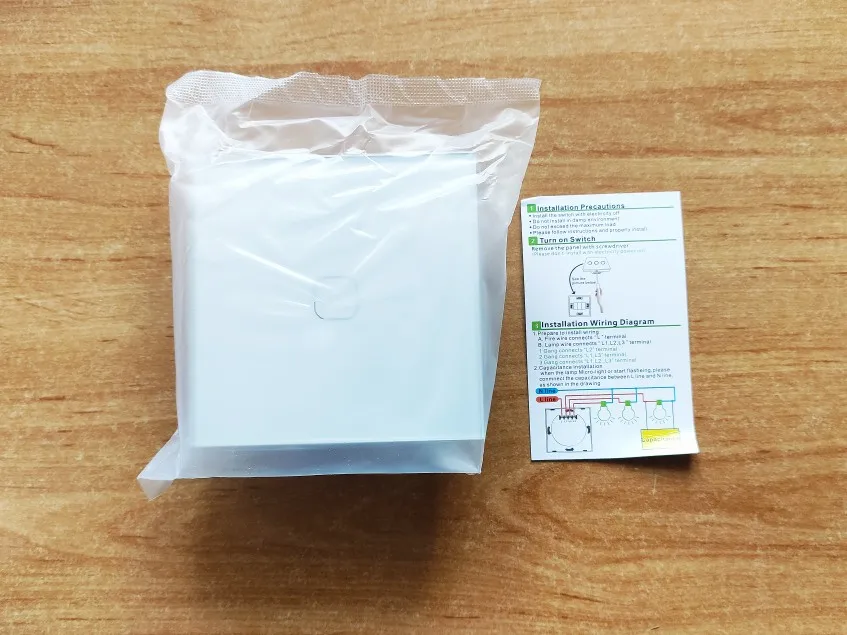 выключатель пришел в целости и сохранности. внутри имеется инструкция по подключению,если вдруг кому надо. рассчитан под подрозетник. если решите устанавливать его в место старого выключателя с распорками,то придется поколхозить. работает отлично от лёгкого прикосновения.
