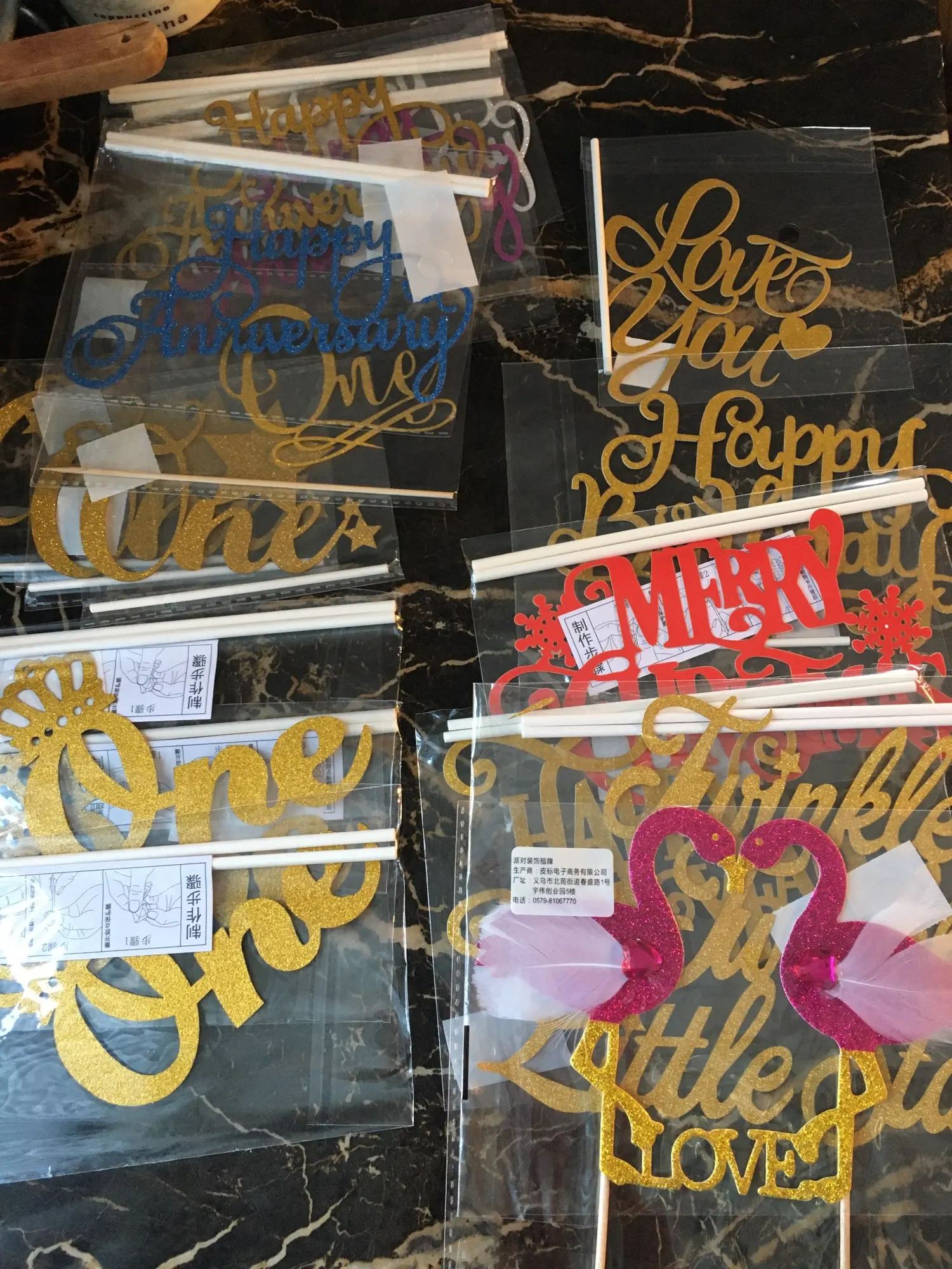 Один с бантом Снежинка звезда Торт Toppers с днем рождения золото серебро бумажная доска торт флаг день рождения материалы для украшения тортов