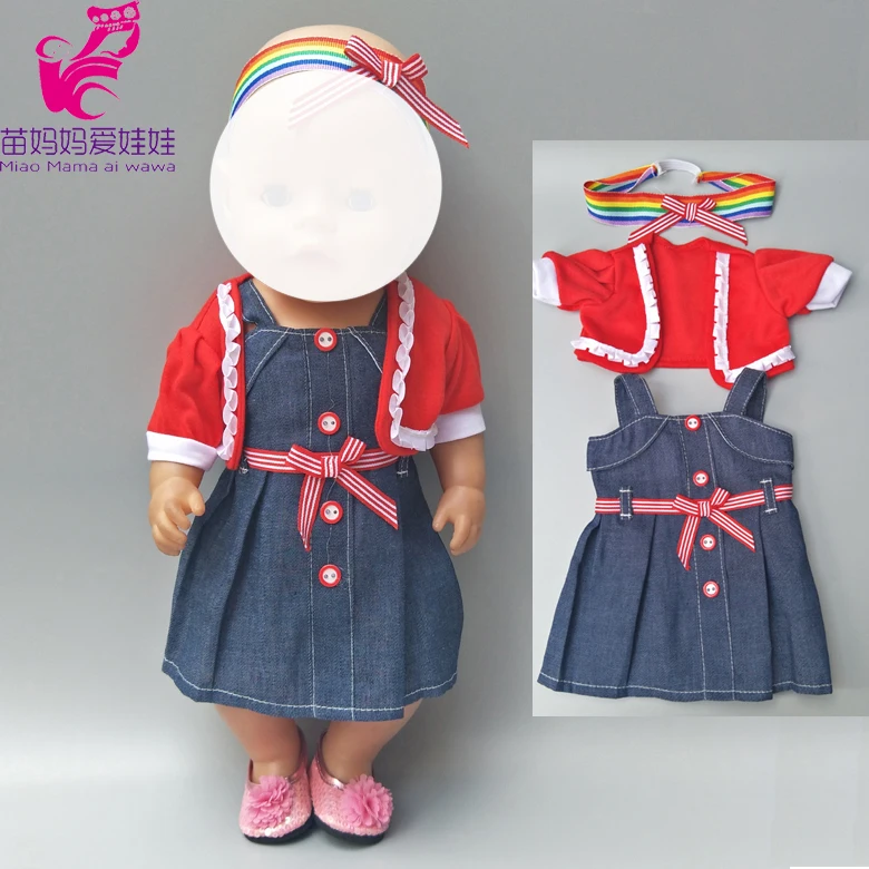 18-дюймовый кукольный жилет, повязка на голову, джинсовое платье, размер 43 см, детская кукольная куртка, жилет, платье, подарки для детей