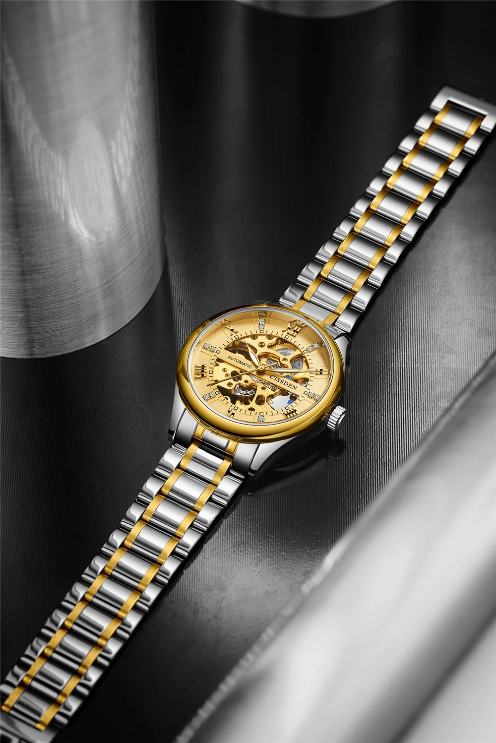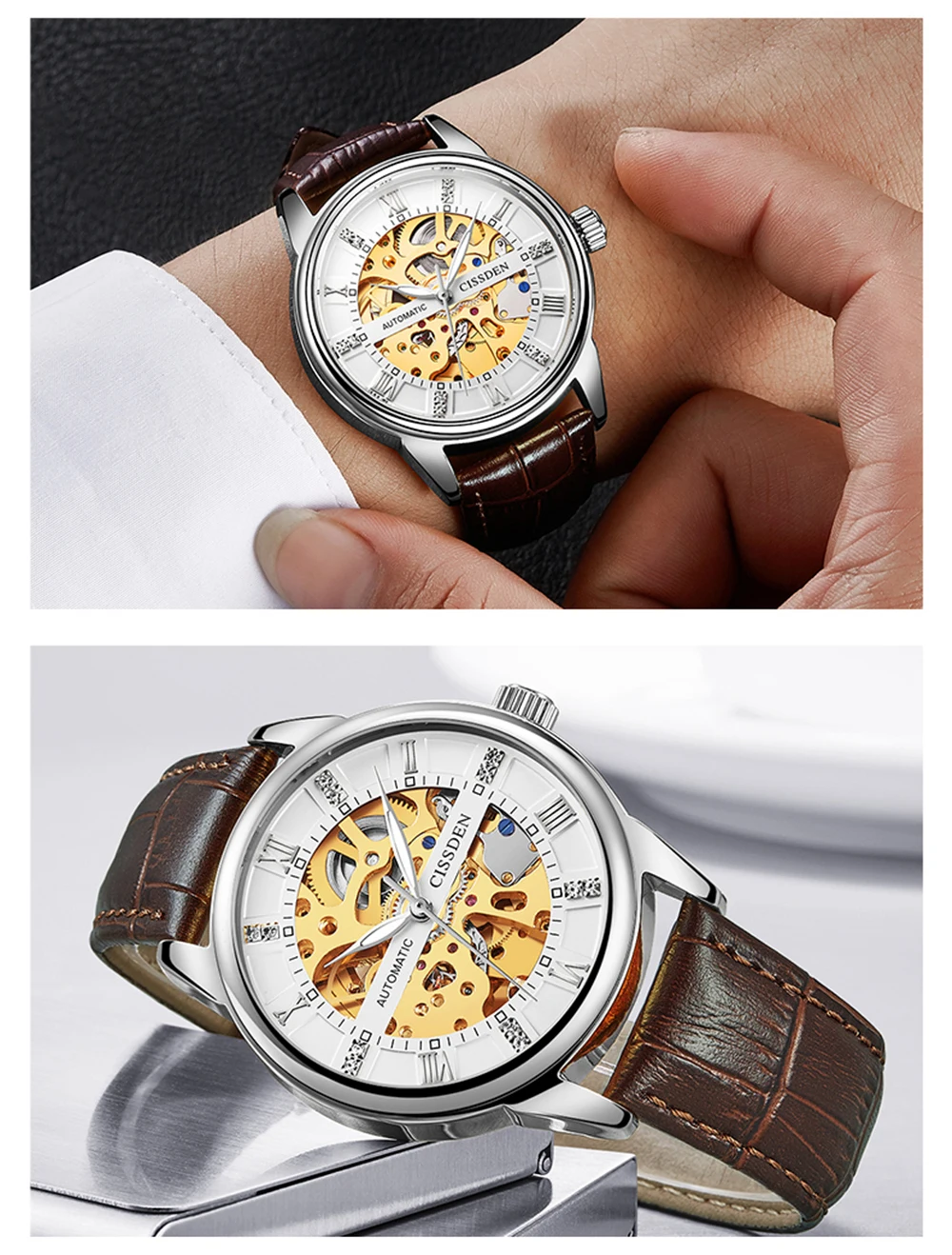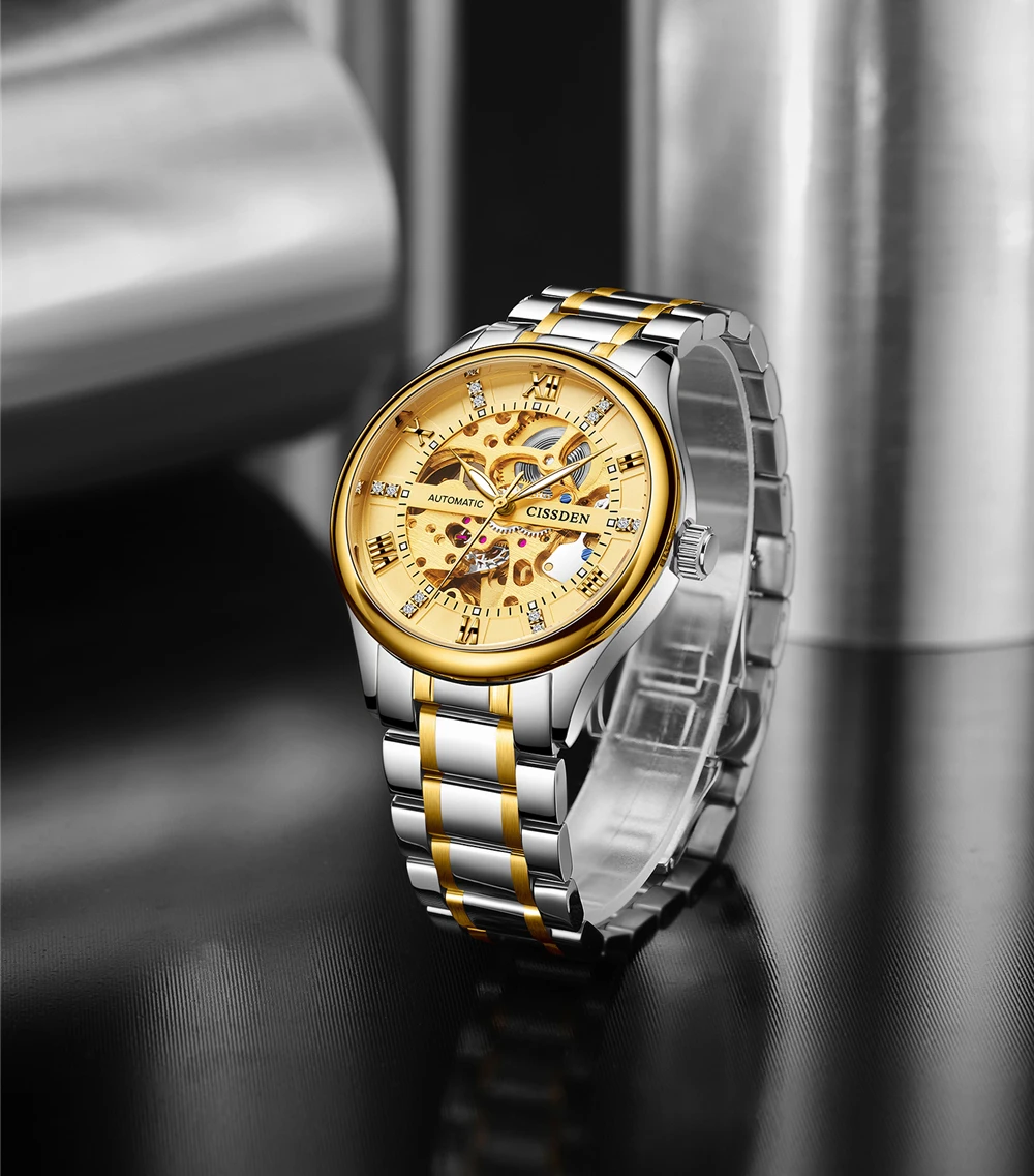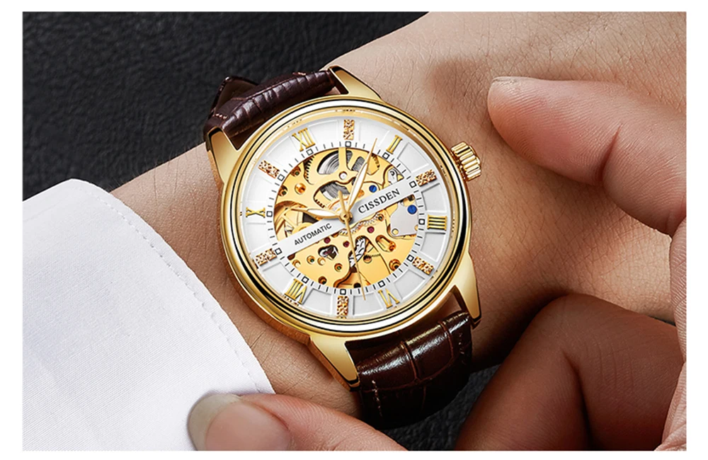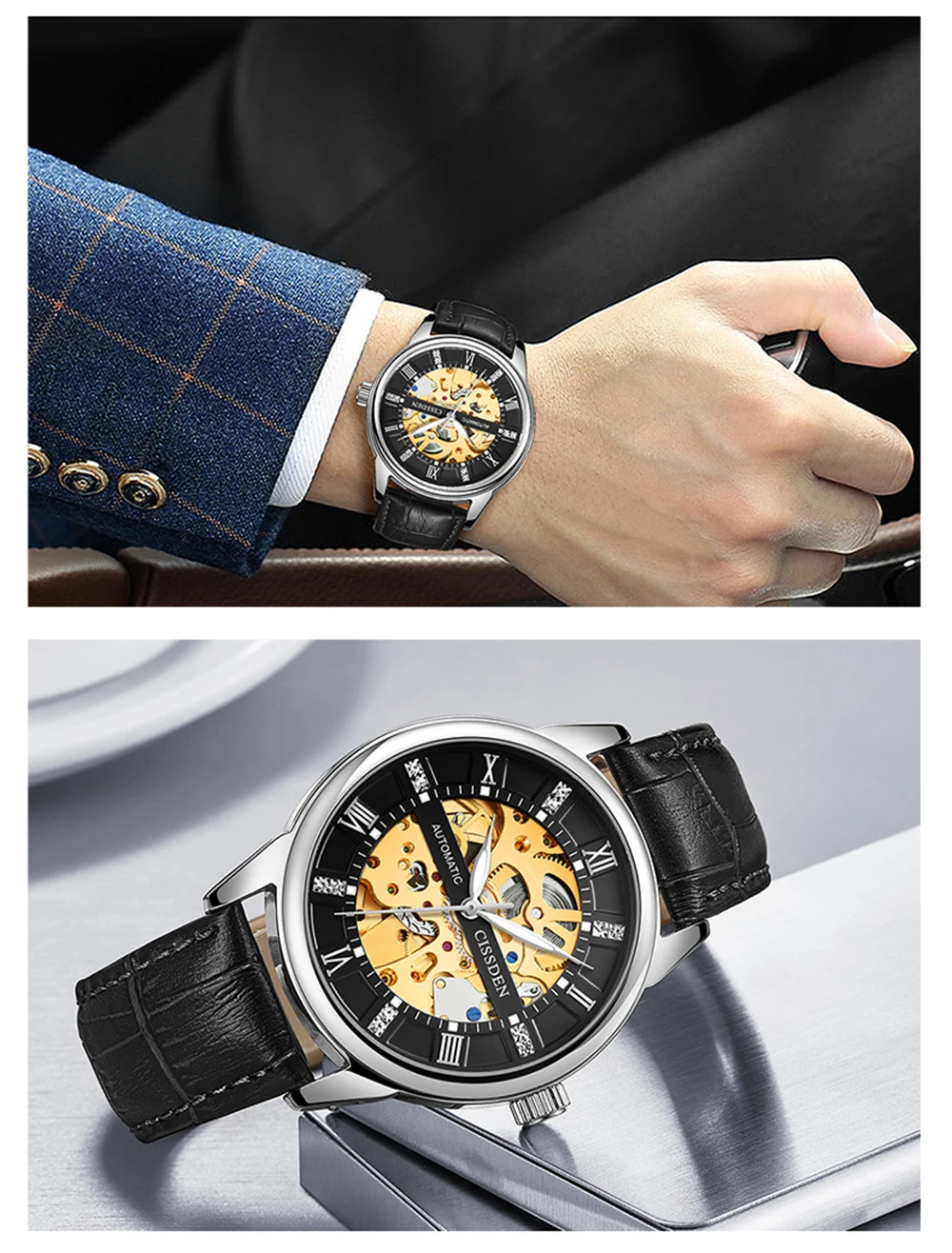 Часы-скелетоны CISSDEN Мужские механические, водонепроницаемые, золотистые, 2022