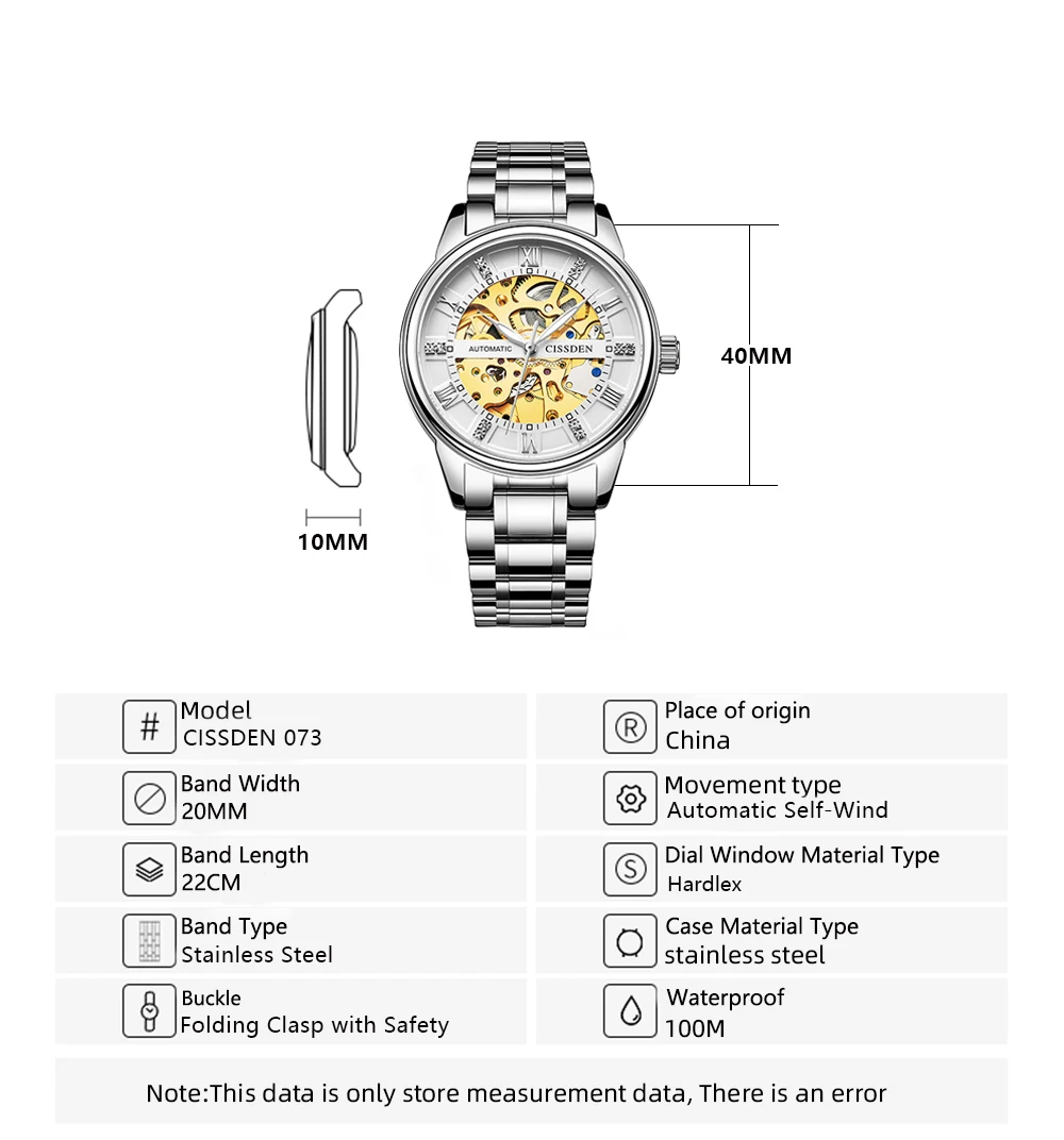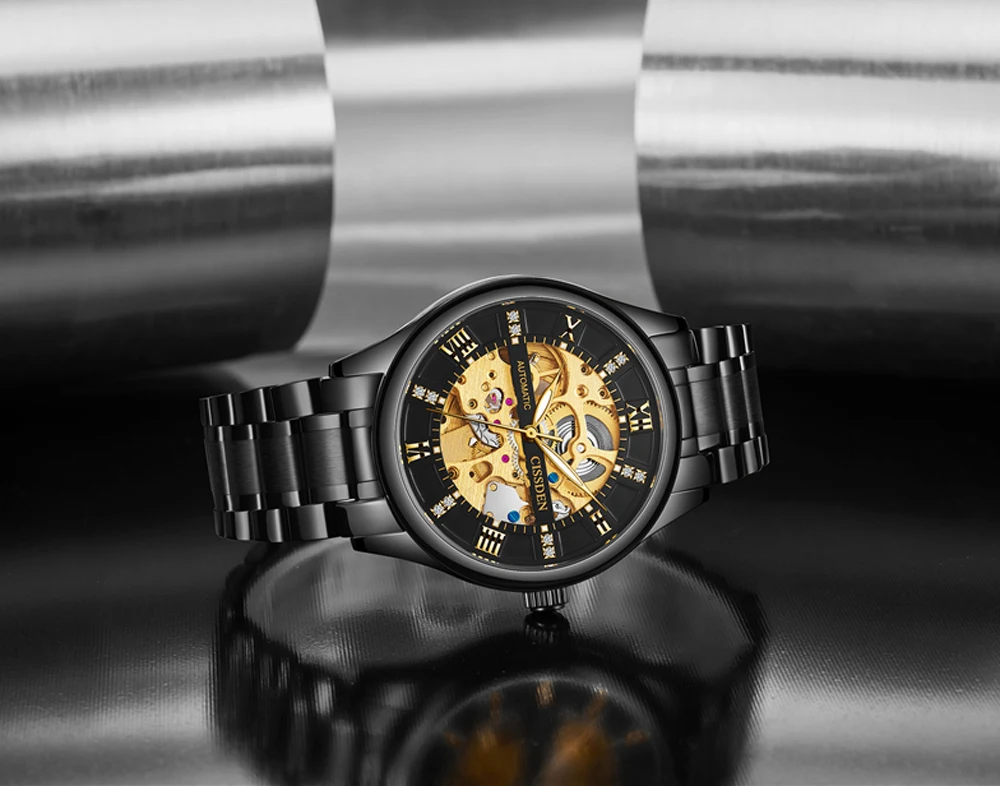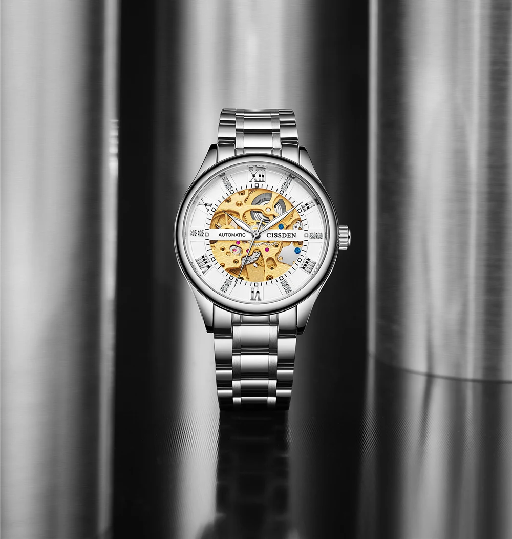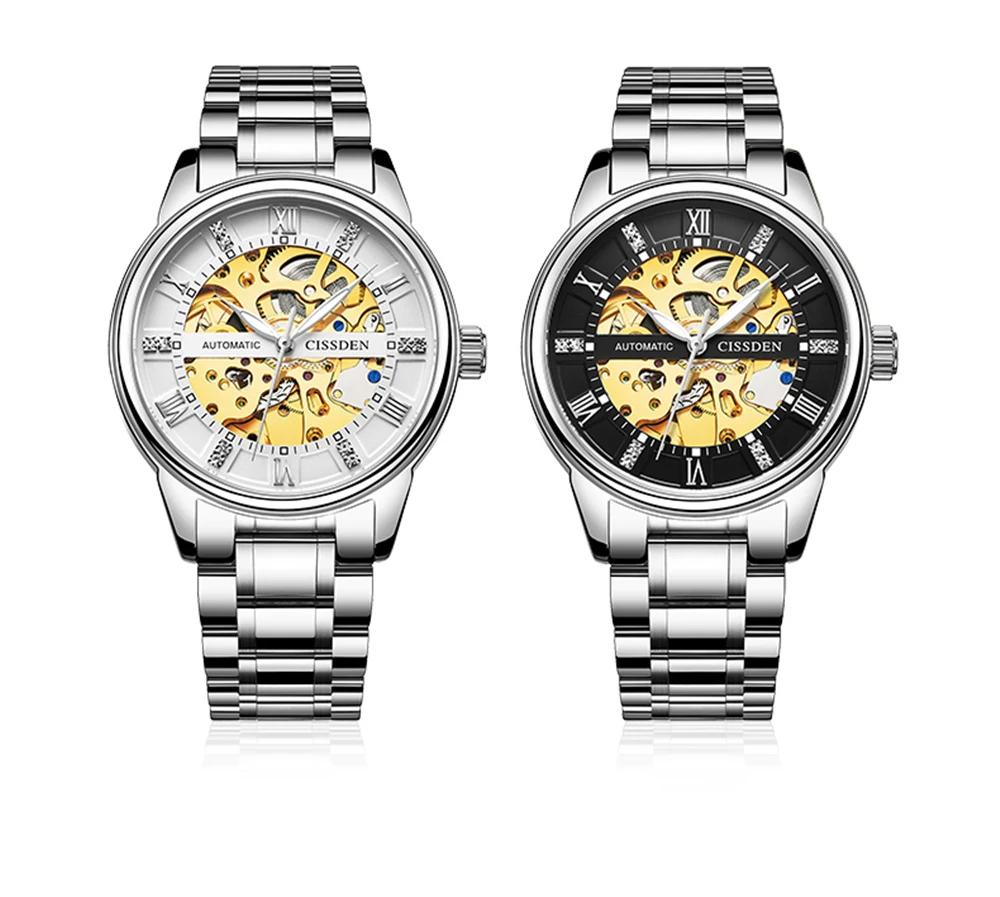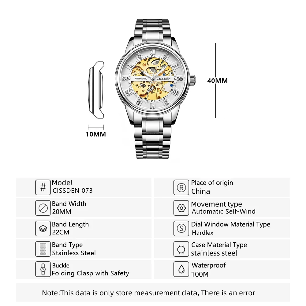 Часы-скелетоны CISSDEN Мужские механические, водонепроницаемые, золотистые, 2022