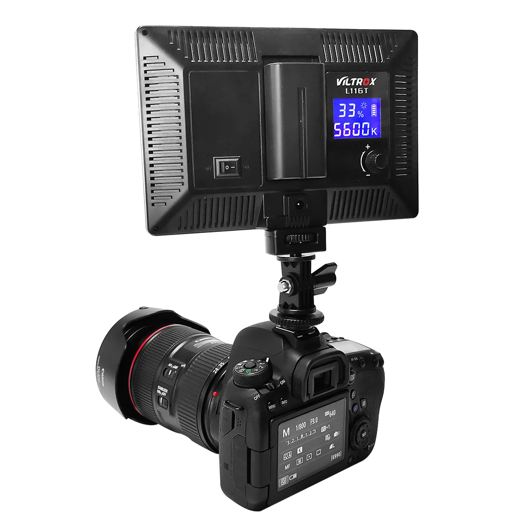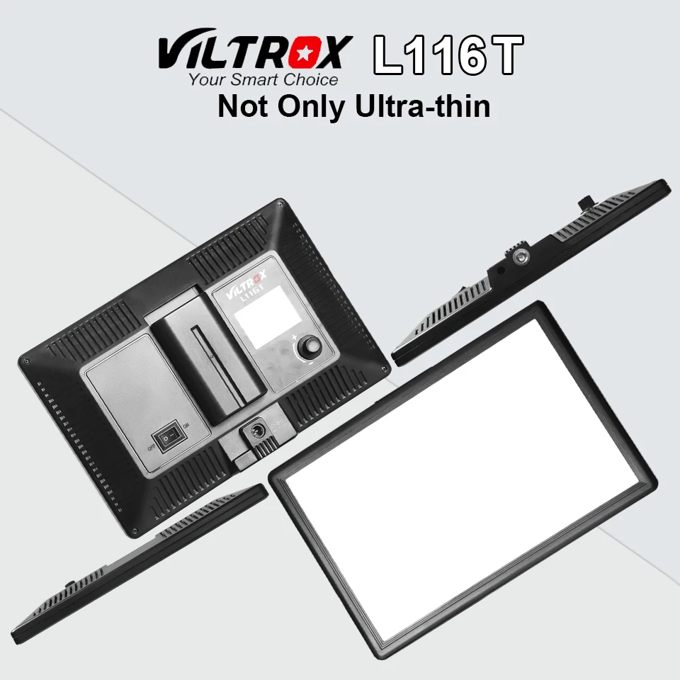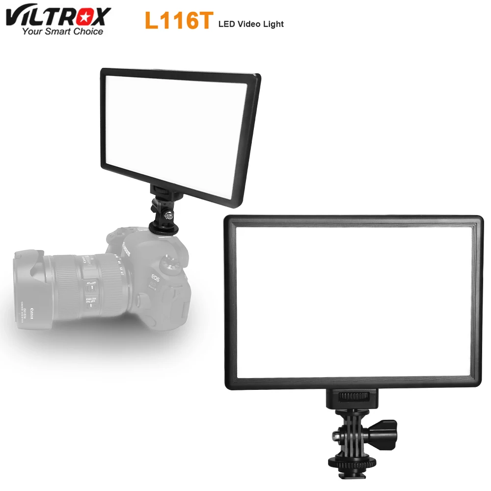Светодиодный светильник Viltrox L116T, ультратонкая двухцветная студийсветильник LED лампа с ЖК-дисплеем и приглушаемой яркостью для цифровой зеркальной камеры